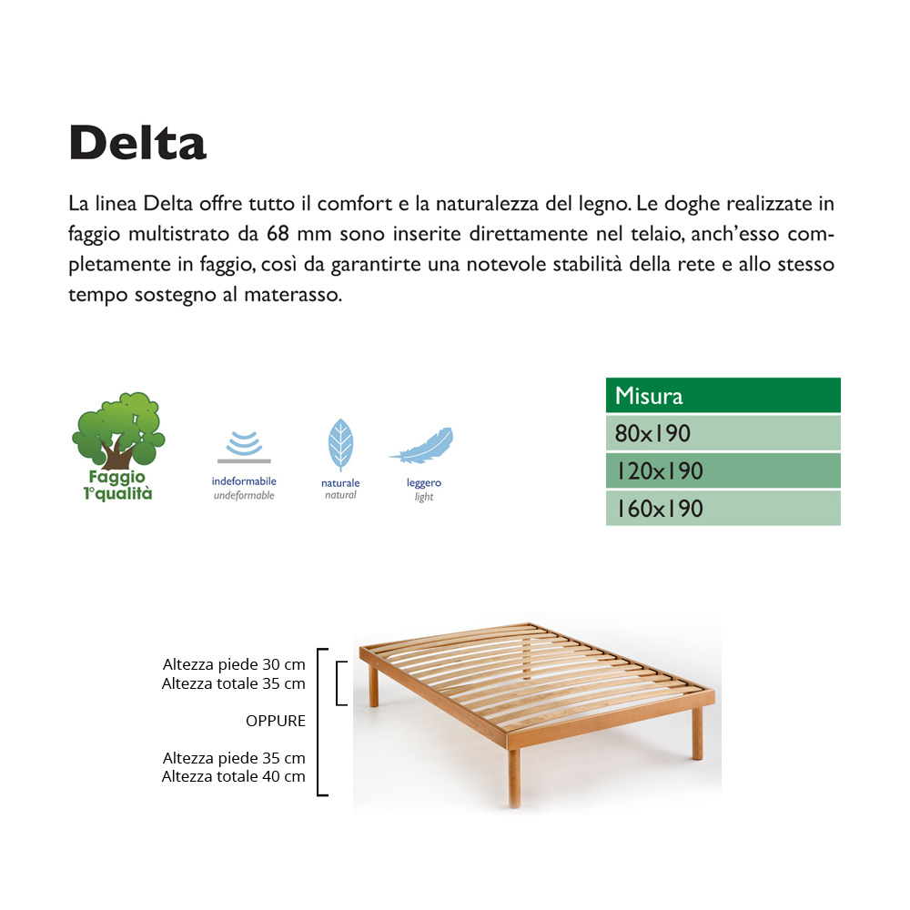 Somier Piazza e Mezzo íntegramente en madera de haya orgánica Delta 120x190 cm - Delta