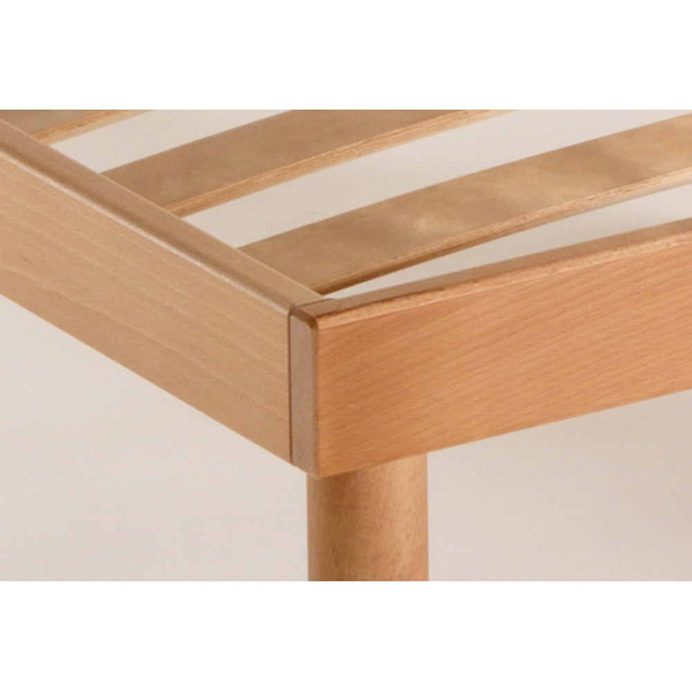 Las lamas de haya multicapa de 68 mm se insertan directamente en el somier, también completamente de haya, para garantizar una considerable estabilidad del somier y al mismo tiempo sujetar el colchón.