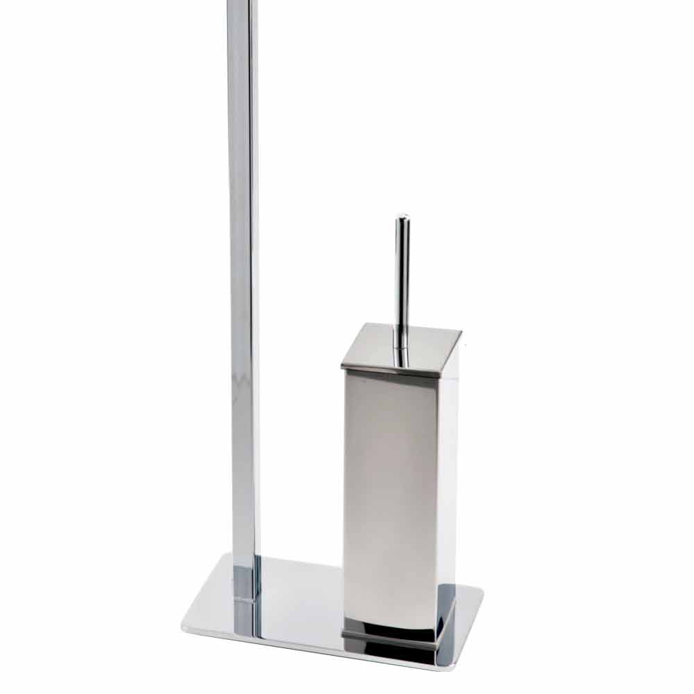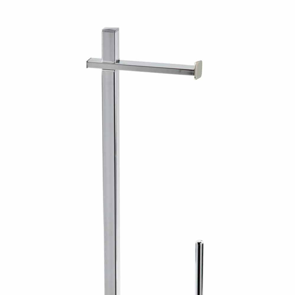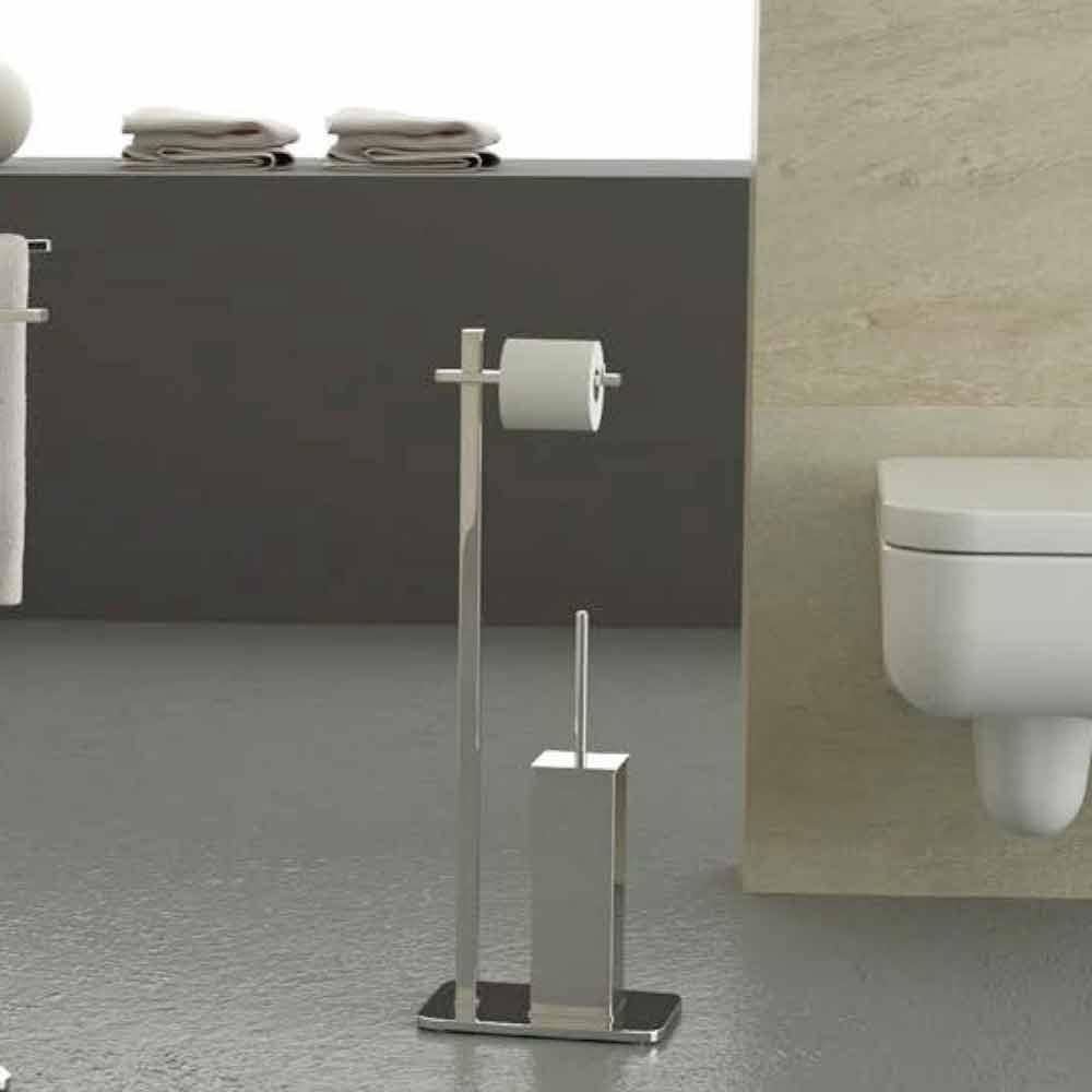 Escobilla para papel higiénica y rodillo de pie moderno en hierro cromado Made in Italy.