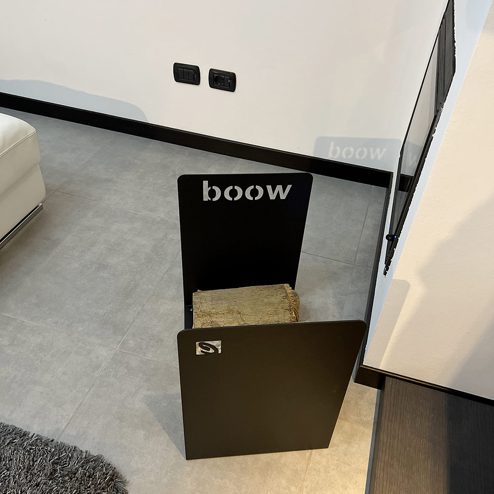 Soporte de leña para chimenea fabricado en acero con recubrimiento de polvo no tóxico de alta calidad. Diseñado, diseñado y hecho a mano en Italia, con el objetivo de resaltar no solo la utilidad del porta leña en sí, sino también su valor estético.
