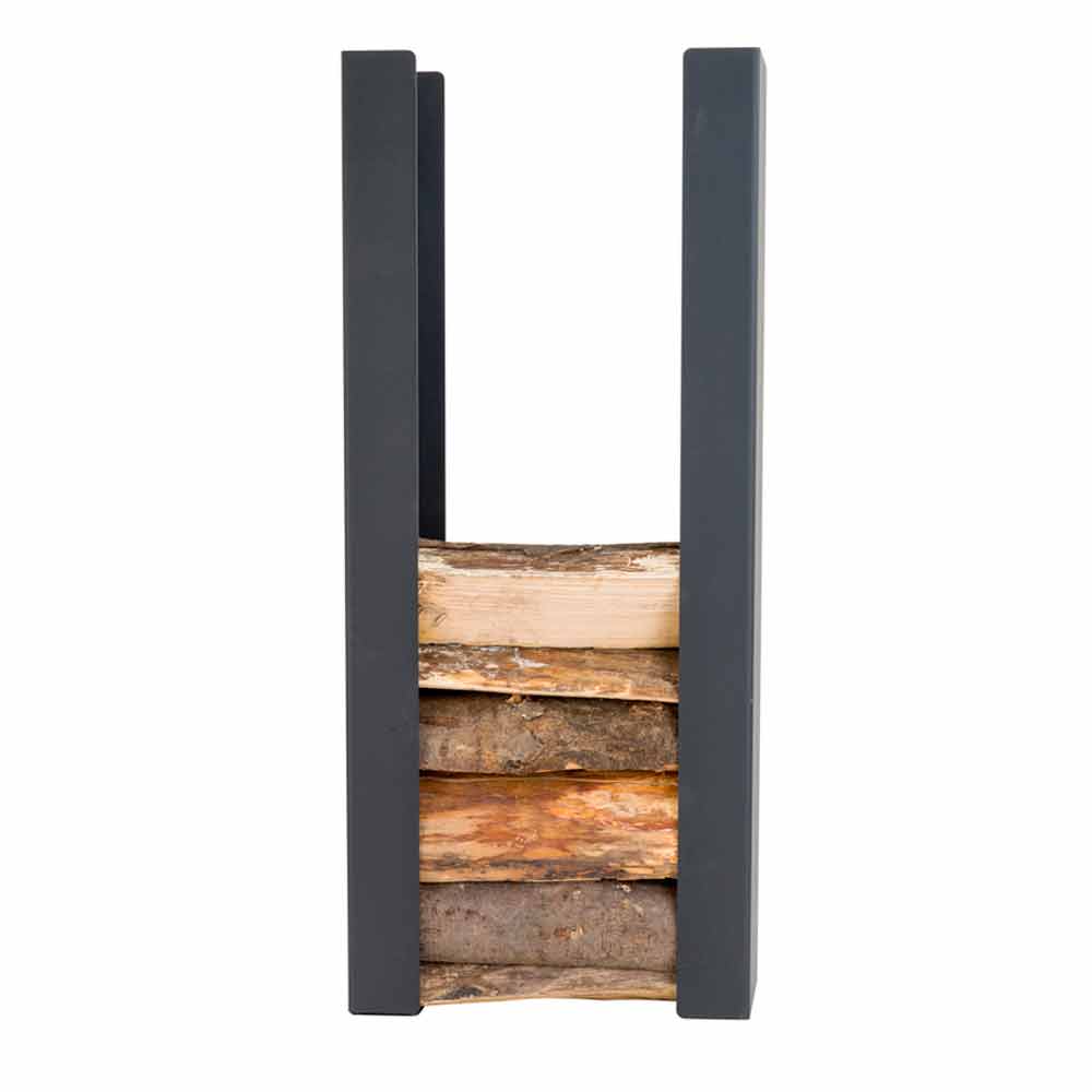 Soporte de leña para chimenea fabricado en acero con recubrimiento de polvo no tóxico de alta calidad.