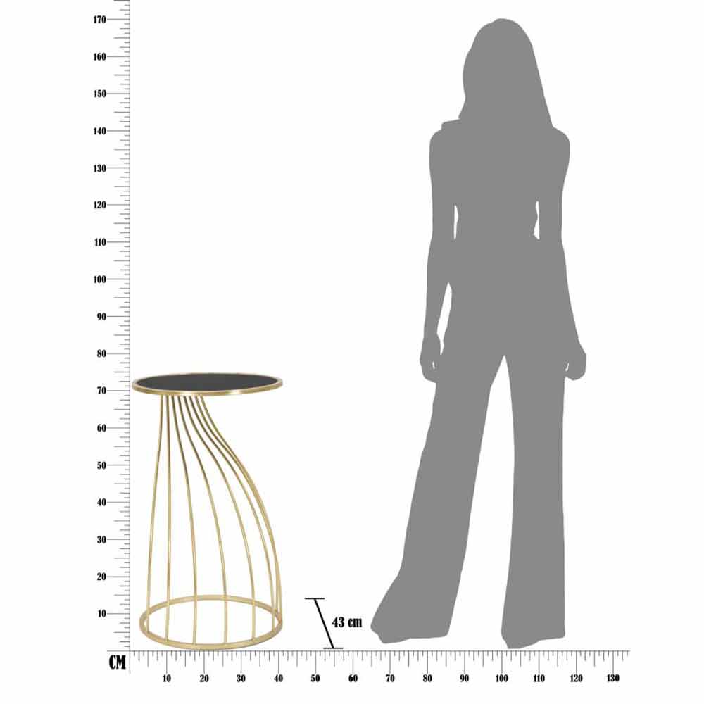 Mesa de teléfono redonda moderna en hierro y MDF con tapa de cristal.