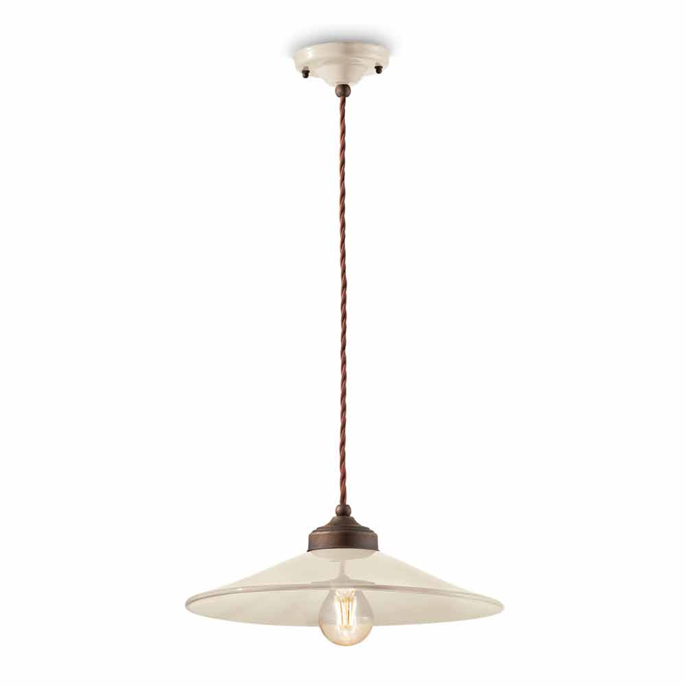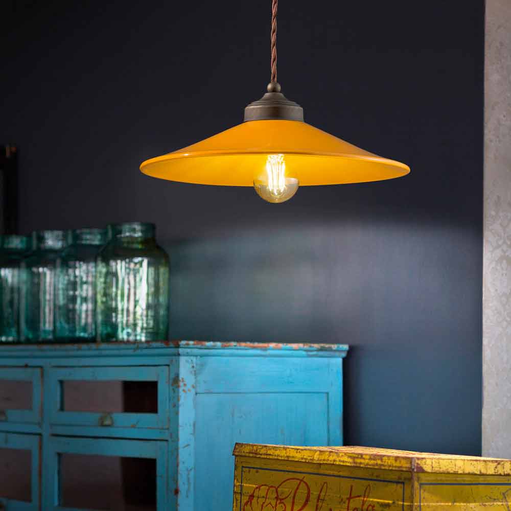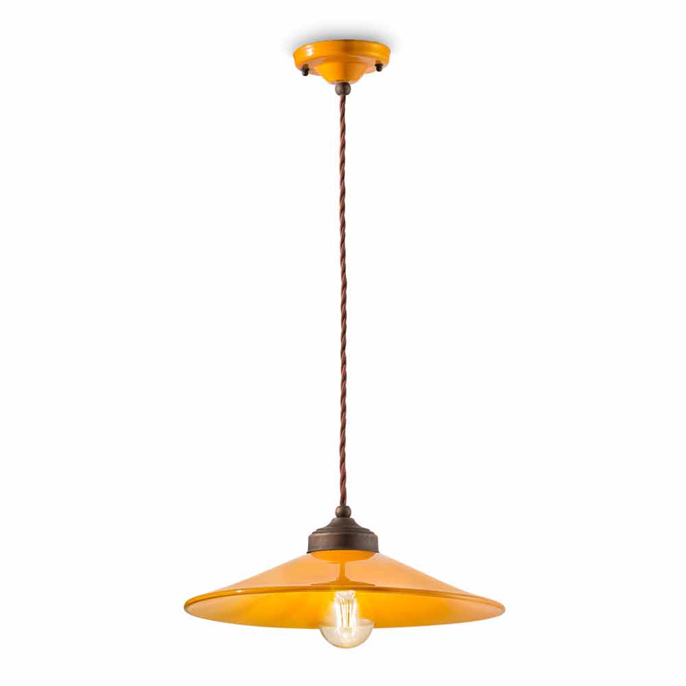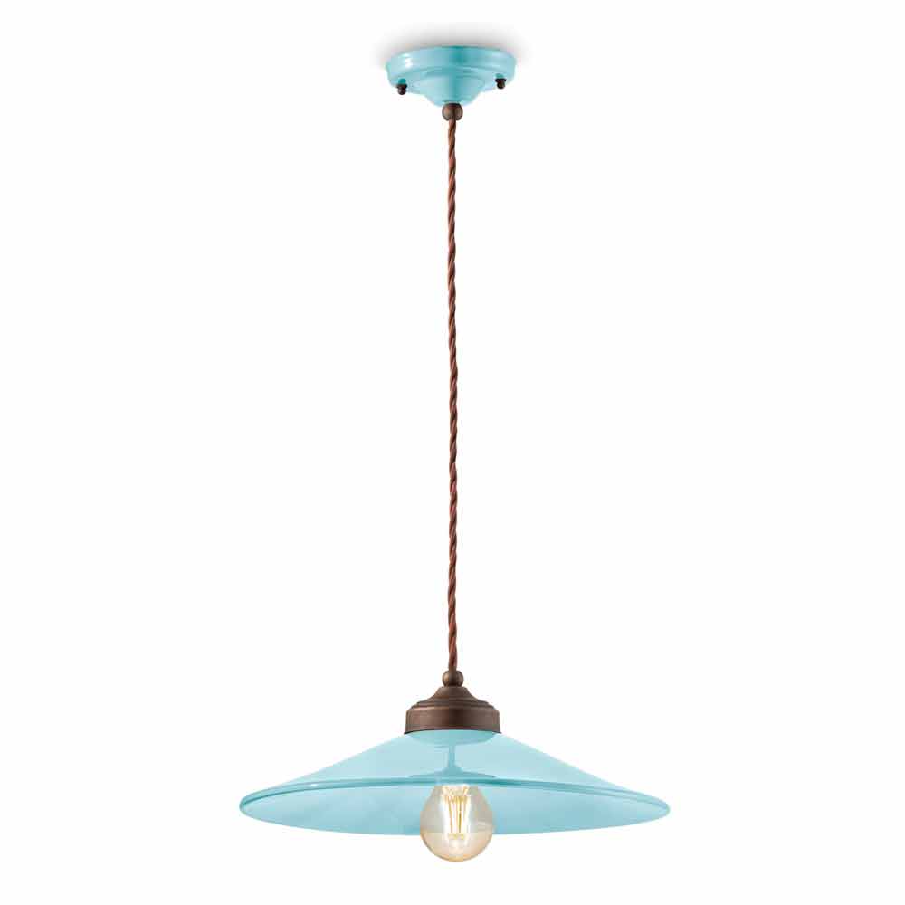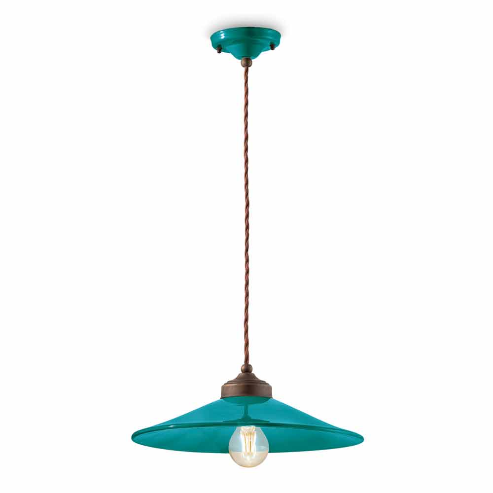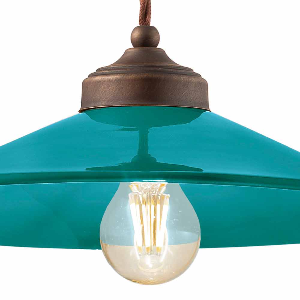 Suspensión en cerámica coloreada y latón envejecido Maya de Ferroluce Maya es una fantástica lámpara de suspensión, con un estilo rertò revisado en clave moderna, hecha a mano por expertos artesanos en Italia. Esta hermosa suspensión consta de una estructura de latón envejecido con un difusor de cerámica de color brillante, disponible en diferentes colores. La cerámica coloreada va bien con el latón antiguo y esta unión es el punto fuerte de esta lámpara. Suspensión creada para ambientes con un ambiente envolvente, es capaz de satisfacer las solicitudes más exigentes gracias a un diseño único y original. Un diseño que se opone al lujo pero que convive armónicamente con él. Diseño que preserva la esencialidad del uso y tranquiliza con un delicado equilibrio entre formas y tonos. La luz amplia y difusa aporta un ambiente cálido y acogedor a todos los ambientes en los que se inserta. Son estas formas sencillas y delicadas las que llaman la atención, y que hacen que Maya sea capaz de adaptarse a cualquier decoración, desde la más sencilla y minimalista hasta la más clásica, creando un delicado contraste. ¡Dale un toque de diseño también a tu hogar! ¡Pequeños detalles para un gran efecto con sabor antiguo! Lámpara disponible en diferentes acabados. ¡Consulta la carta de colores e introduce el código del acabado que deseas en la casilla correspondiente!