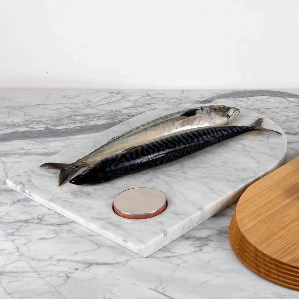 Tabla de cortar de madera, tabla de cortar de mármol y jabón removedor de olores de diseño de cocina hecho en Italia.