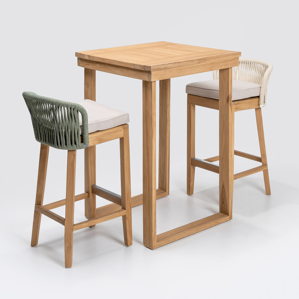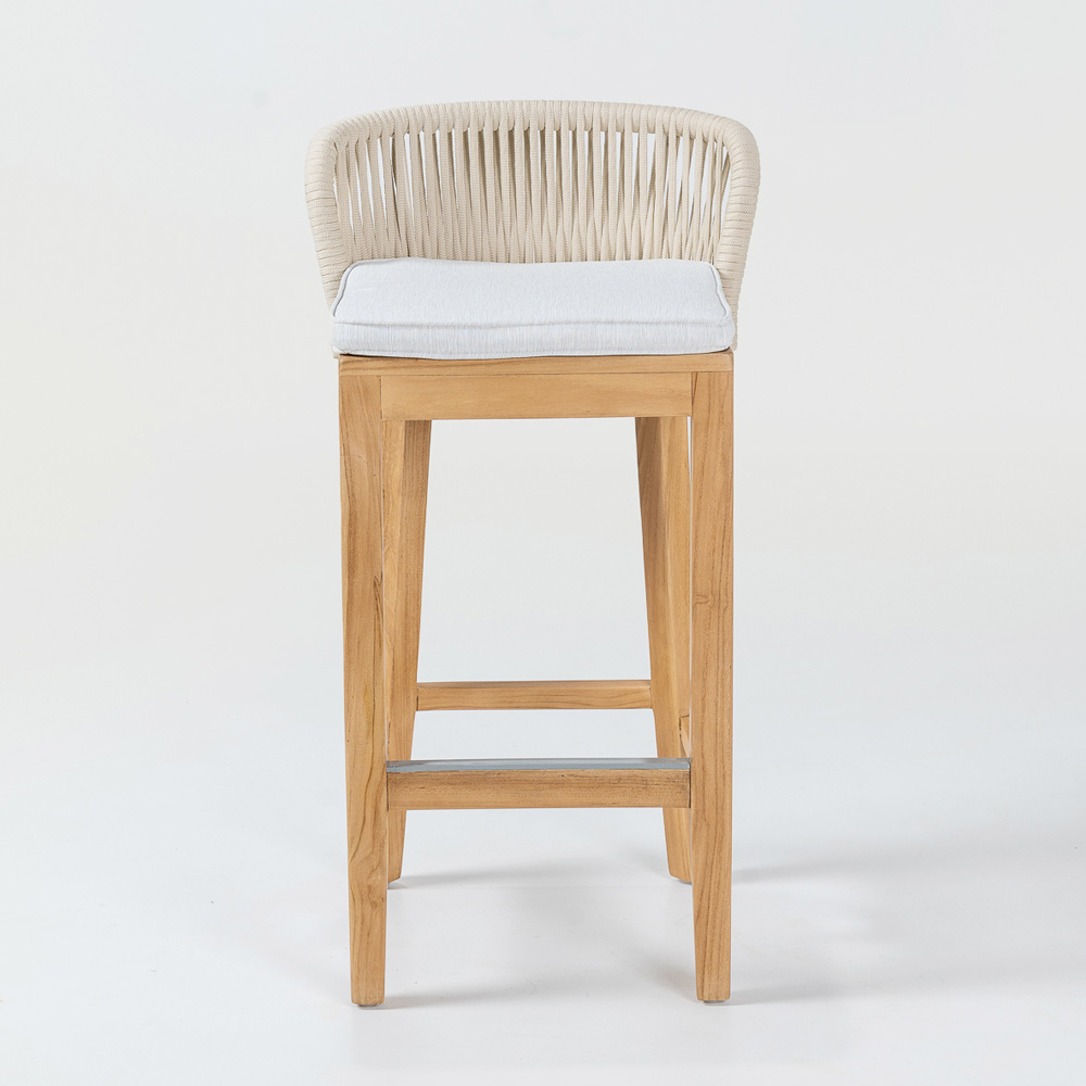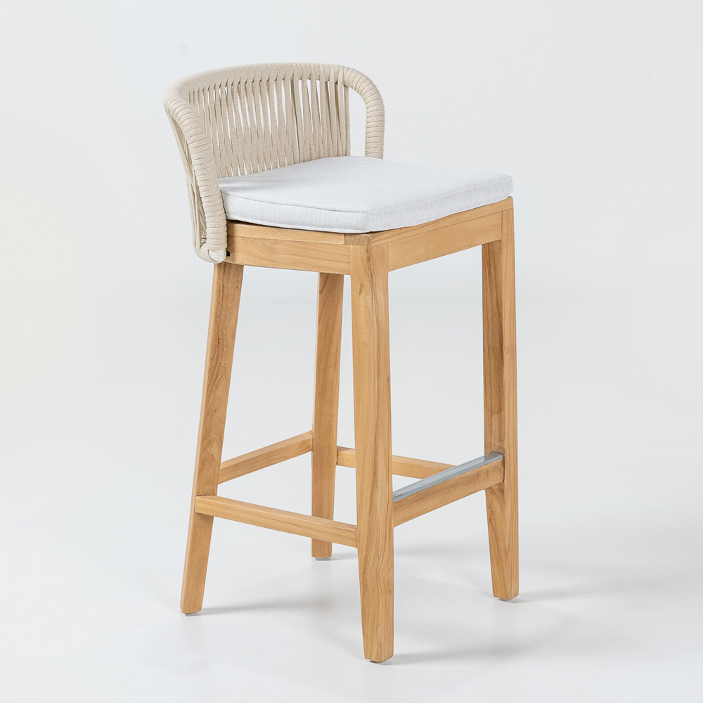 Elegante y versátil, este taburete de bar cuenta con una estructura de teca natural y aluminio , lo que garantiza la combinación perfecta de resistencia y ligereza . El cojín de tela gris Habana ofrece una comodidad excepcional, mientras que el tejido de cuerda de olefina/PP no solo aporta un toque de sofisticación , sino que también es resistente a la intemperie, lo que lo hace ideal tanto para interiores como para exteriores.
