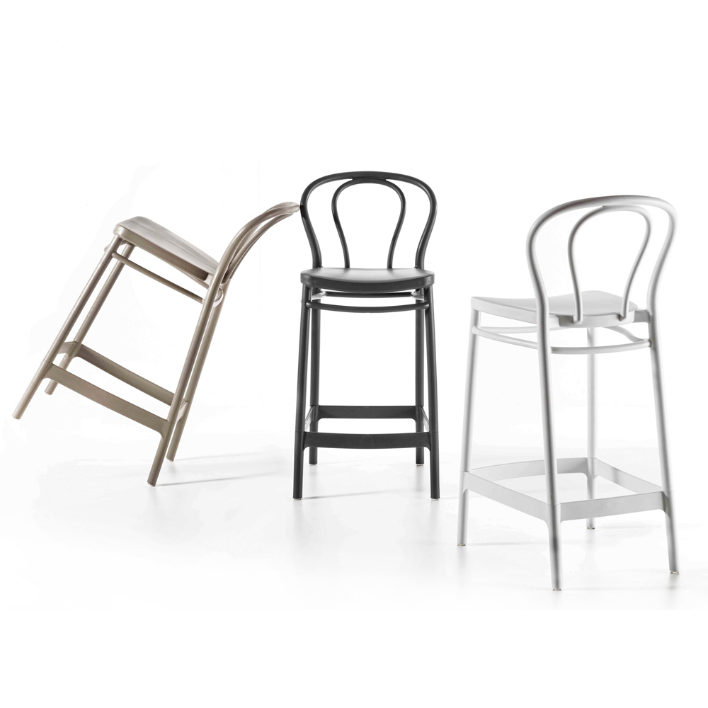 polipropileno . Lo que llama la atención y lo hace innovador de este taburete es su diseño que consigue fusionar