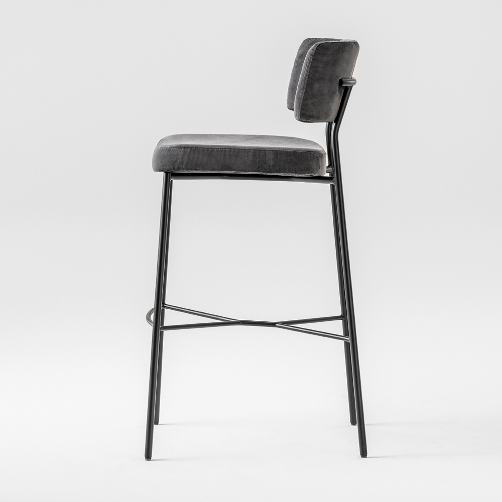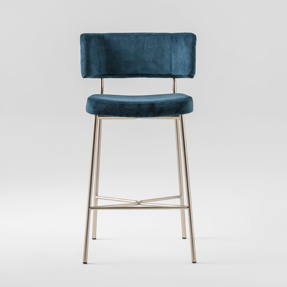 Taburete de cocina fino en metal pintado y terciopelo Made in Italy.