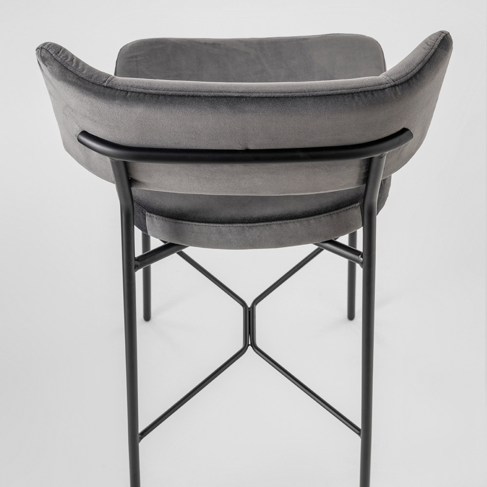 Taburete moderno ideal para encimeras de cocina o mesas altas fabricado en Italia con estructura de metal pintado y asiento y respaldo tapizados en terciopelo . El uso de materias primas de alta calidad junto con un diseño elegante y refinado permite crear un mueble encantador que completa cualquier ambiente dando un toque original. Sus líneas sencillas y la particular estructura curva del respaldo crean un asiento sumamente cómodo y acogedor , perfecto para disfrutar de maravillosos momentos en compañía en los que relajarse y dejarse mimar. Gracias a los maravillosos acabados disponibles para la base y para el revestimiento, es posible satisfacer todas las necesidades logrando crear combinaciones discretas en tonos neutros o soluciones más vivas y coloridas para los amantes de los muebles extravagantes.