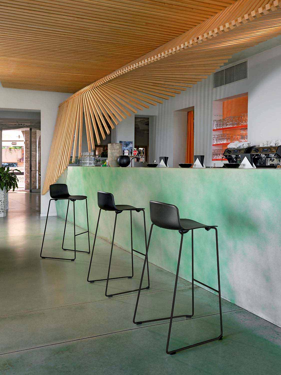 El taburete para exteriores Charla se caracteriza por un diseño minimalista y moderno que se adapta perfectamente a cualquier estilo de ambiente gracias a la versatilidad de la carcasa de polipropileno, disponible en 7 colores diferentes. Charla también tiene una estructura totalmente hecha de metal disponible en metal pintado de blanco o negro y también es posible elegir entre 2 tamaños diferentes.