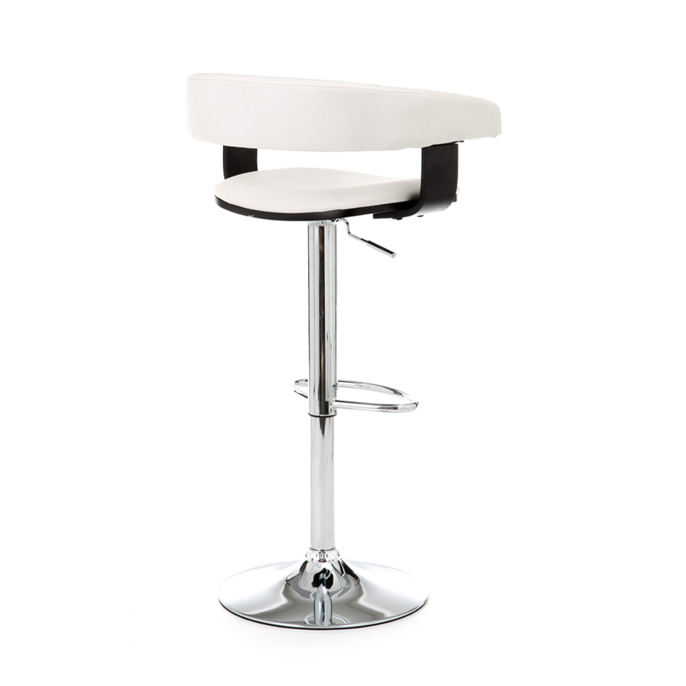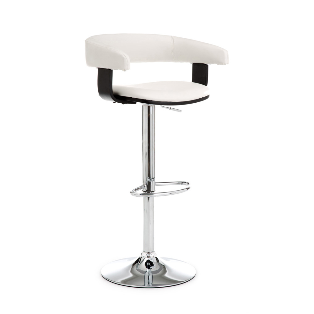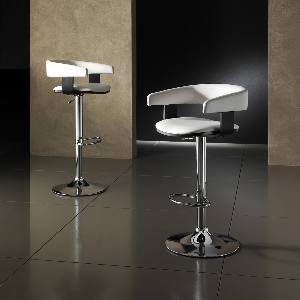 Taburete fabricado con asiento y respaldo tapizados en polipiel, estructura de metal cromado y elevación a gas regulable en altura, íntegramente . Este artículo de estilo moderno y elegante tiene líneas sencillas que lo hacen perfecto para completar el mobiliario de zonas de estar, como cocinas y salones, y también contract, como bares y oficinas. Se han elegido materiales de excelente calidad para garantizar un asiento cómodo y confortable, realzando la artesanía del.