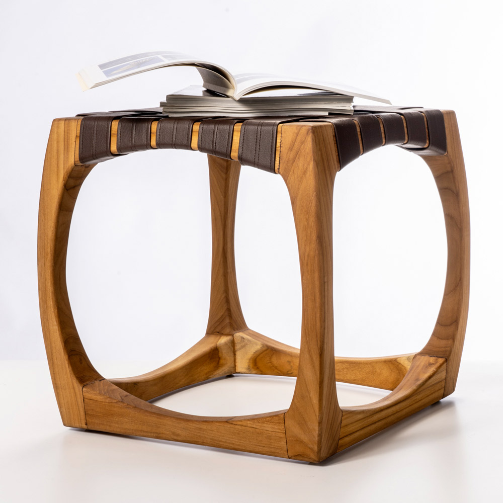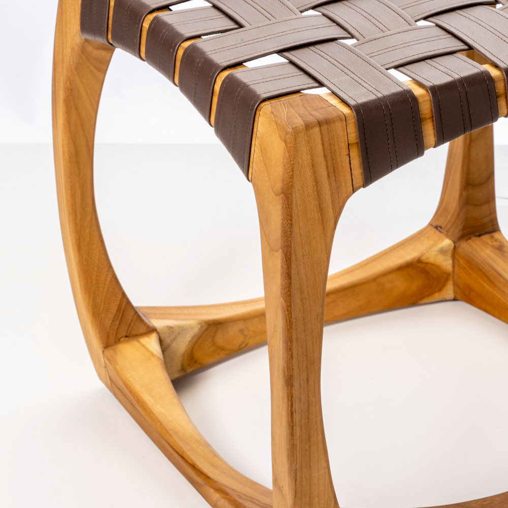 Este taburete de baño es una auténtica obra maestra de diseño y funcionalidad. Su estructura curvada de teca maciza demuestra una hábil artesanía y ofrece una estabilidad incomparable, mientras que el tejido de cuero del asiento no sólo añade un toque de elegancia, sino que también garantiza un asiento cómodo. De generosas dimensiones, este taburete no sólo sirve como asiento sino también como superficie de apoyo para objetos personales como neceseres o accesorios de baño. Es una pieza versátil que encaja perfectamente en cualquier baño, combinando practicidad y estilo impecable .