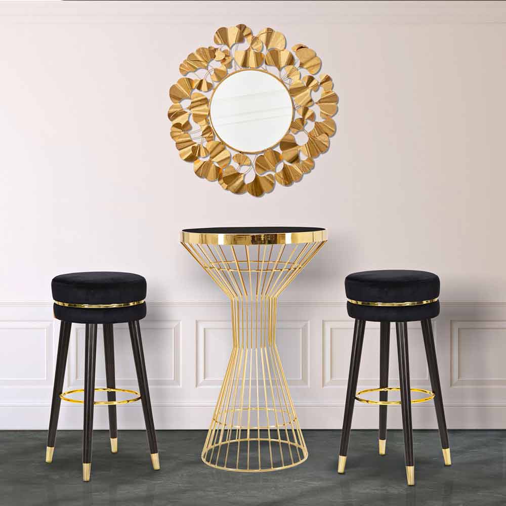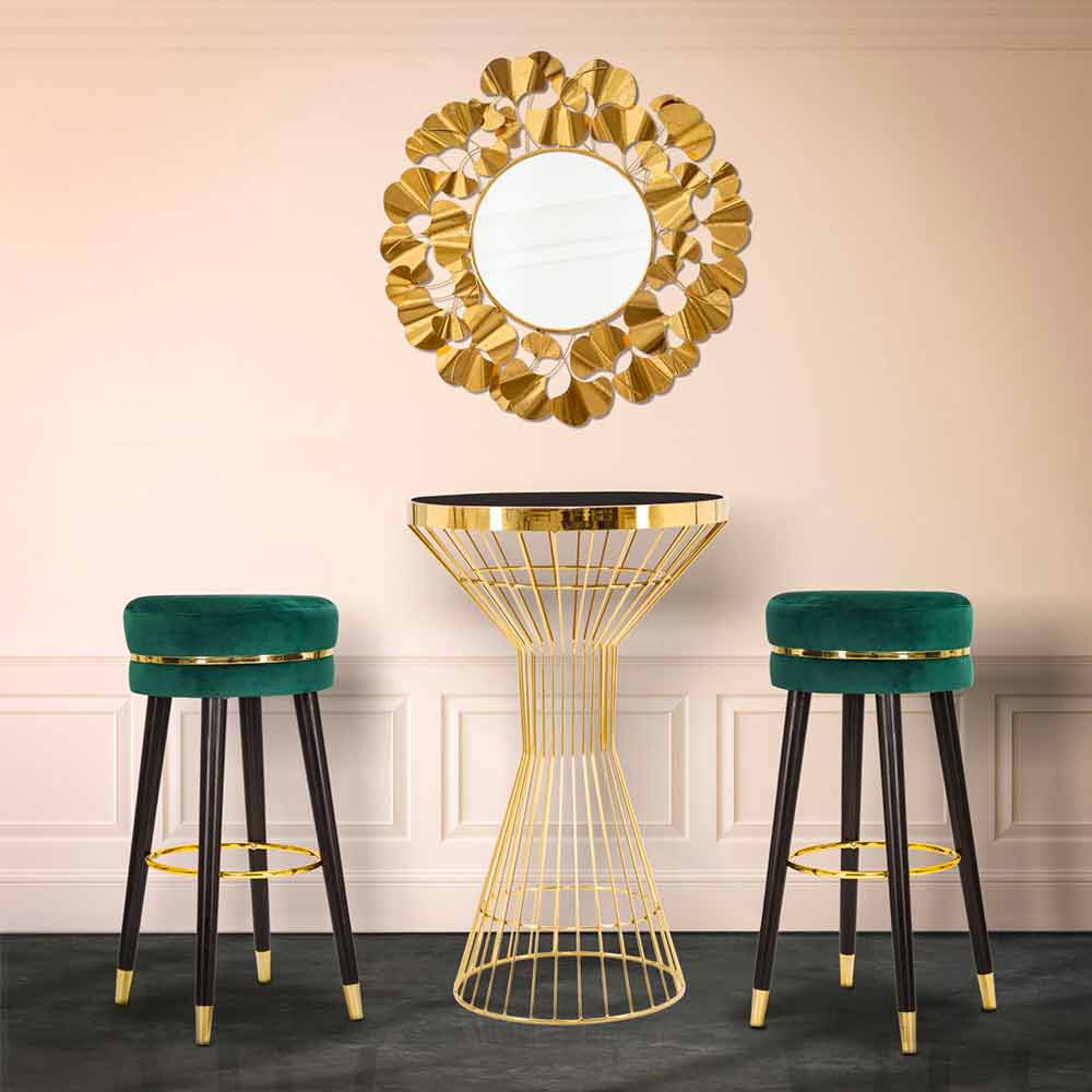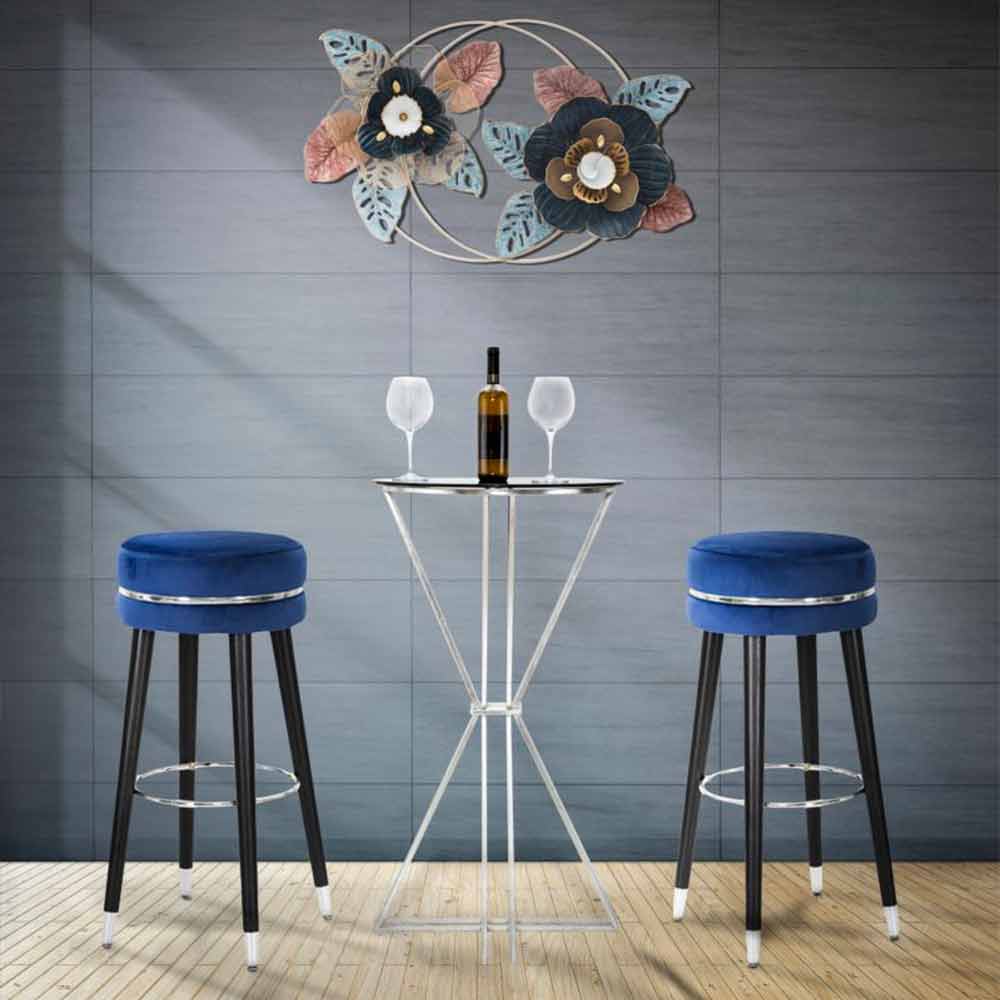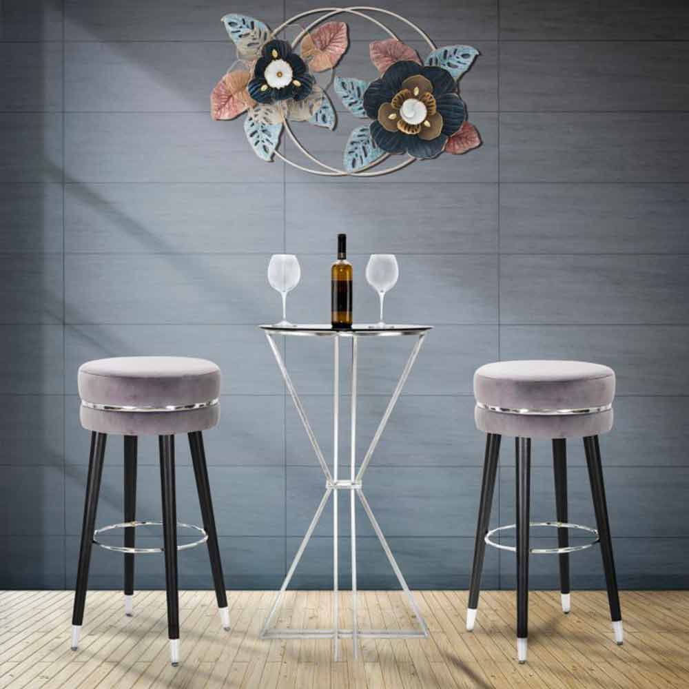 Taburete de bar redondo de estilo moderno Ø 35 cm en madera y tela.