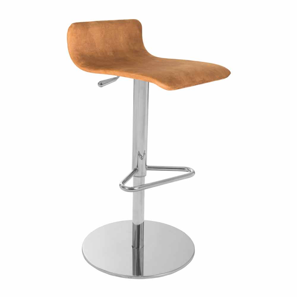 - base redonda en acabado cromado y asiento cubierto en econabuk marrón (material similar al ante, muy suave al tacto)