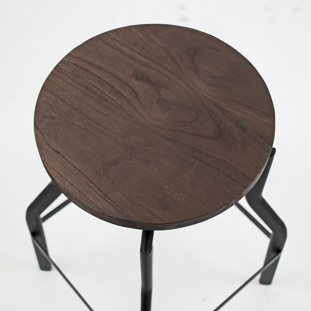 Cuenta con una estructura metálica pintada en negro de estilo industrial y un asiento de nogal industrial, ajustable en altura hasta un máximo de 76 cm. Consigue el máximo estilo y comodidad con este taburete.
