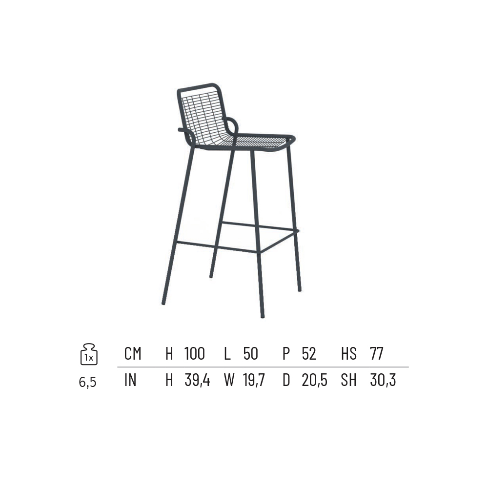 Taburete de jardín apilable con reposapiés Fabricado en Italia, 2 piezas.