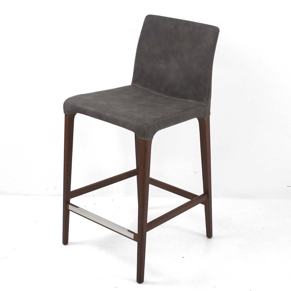 Taburete de comedor íntegramente fabricado en Italia con estructura de madera de fresno teñido nogal medio y asiento en símil piel color tierra. Taburete con un encanto atemporal, combina la elegancia de la madera y el refinamiento de la piel sintética, creando una reinterpretación moderna perfecta para amueblar cualquier sala de estar. Es ideal para uso doméstico y contract gracias a sus acabados simples y lineales. Los materiales utilizados para la construcción garantizan calidad y resistencia incluso en el tiempo.