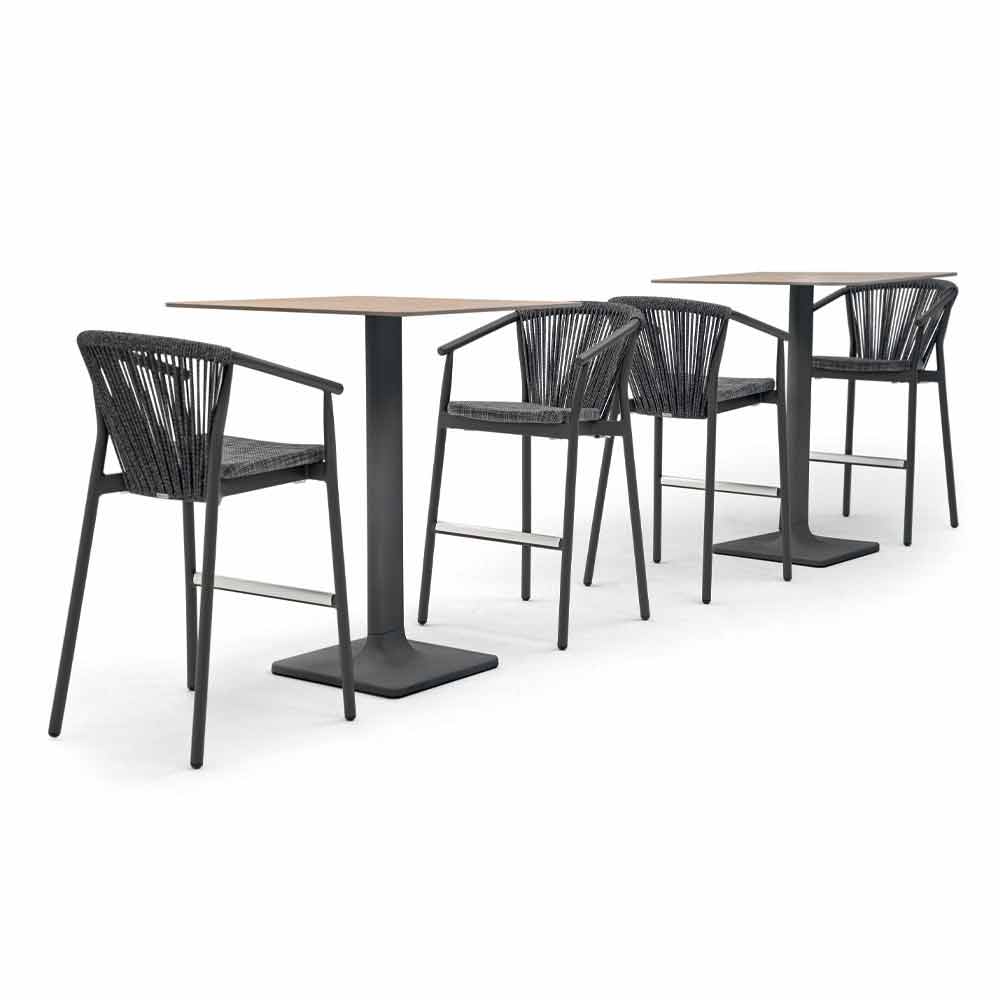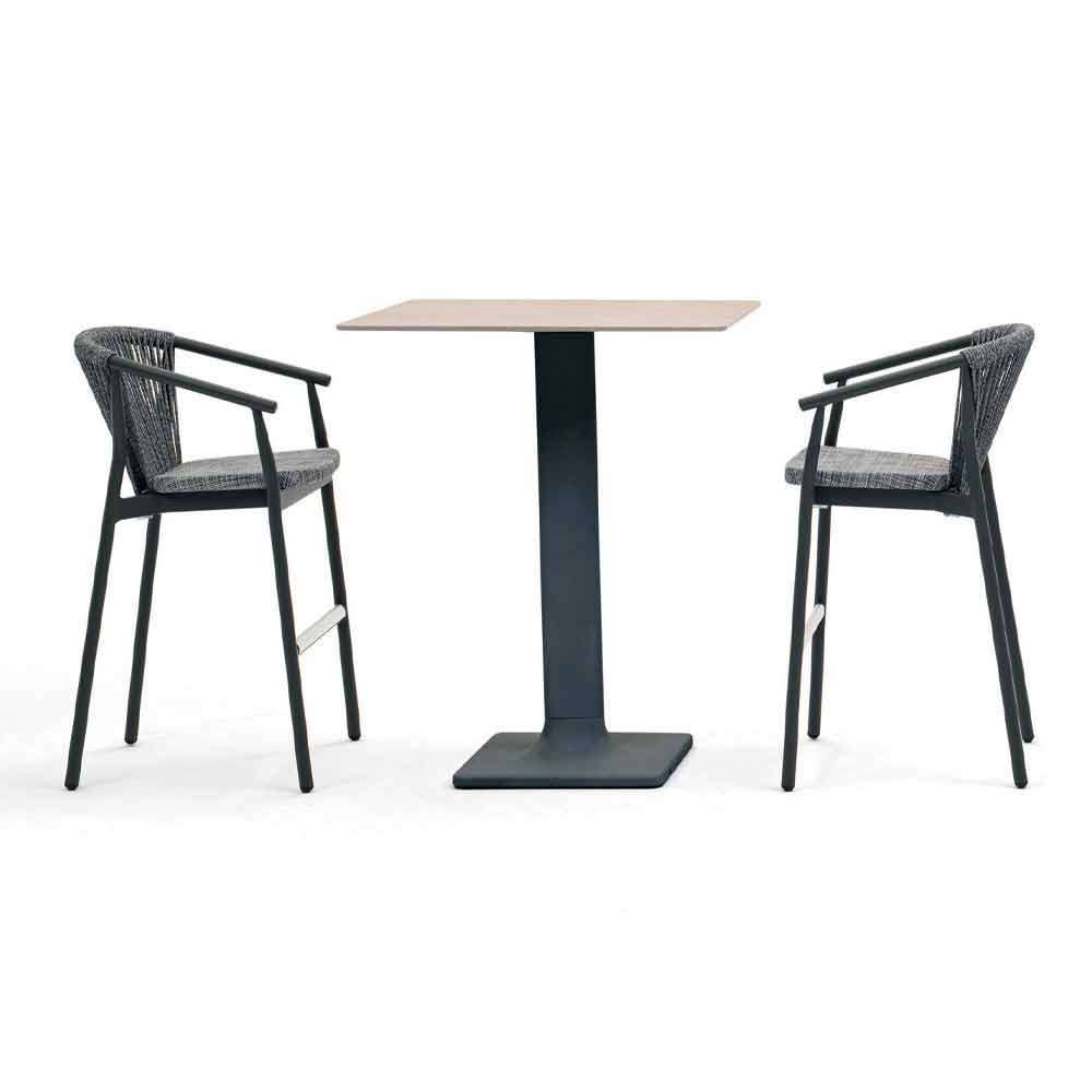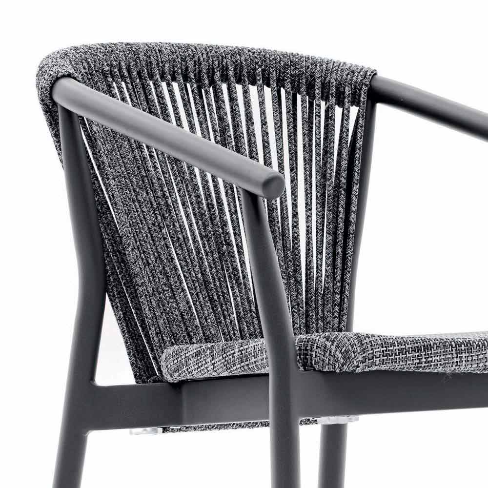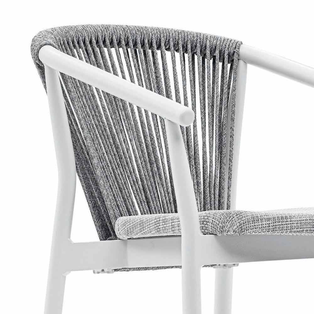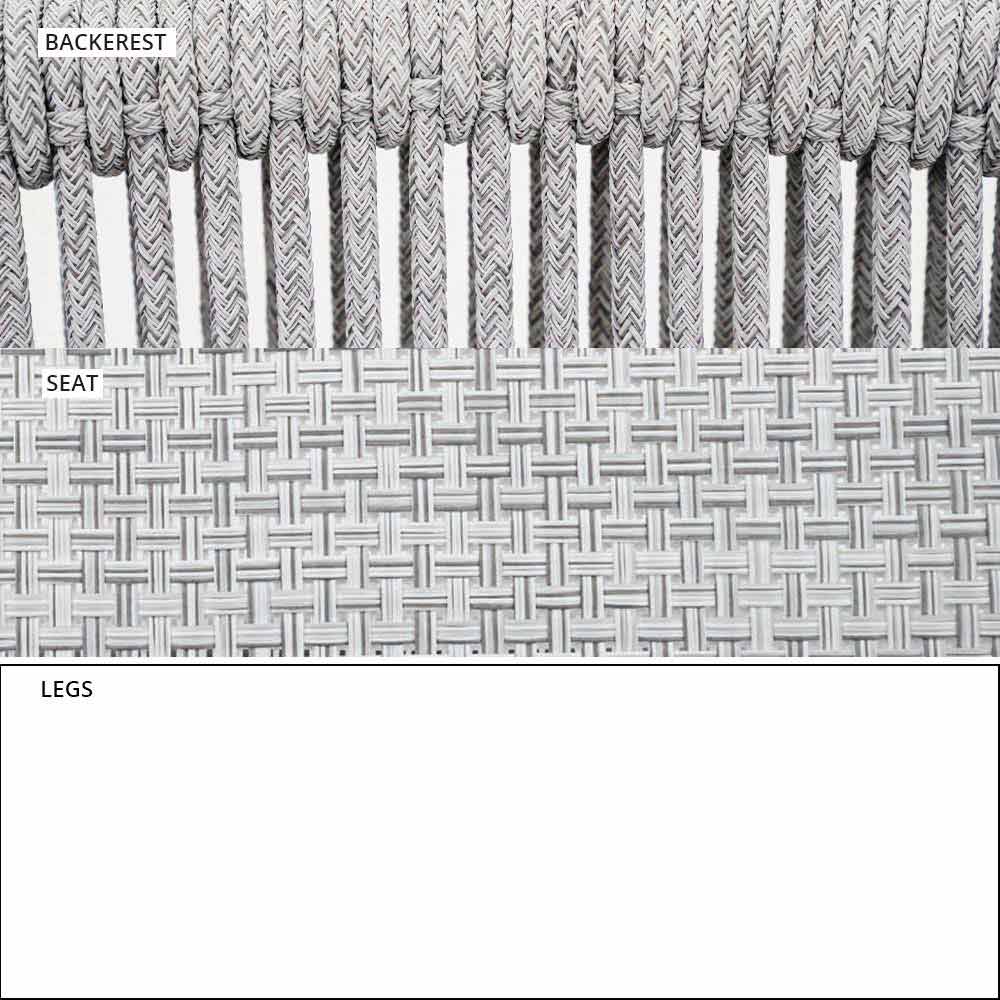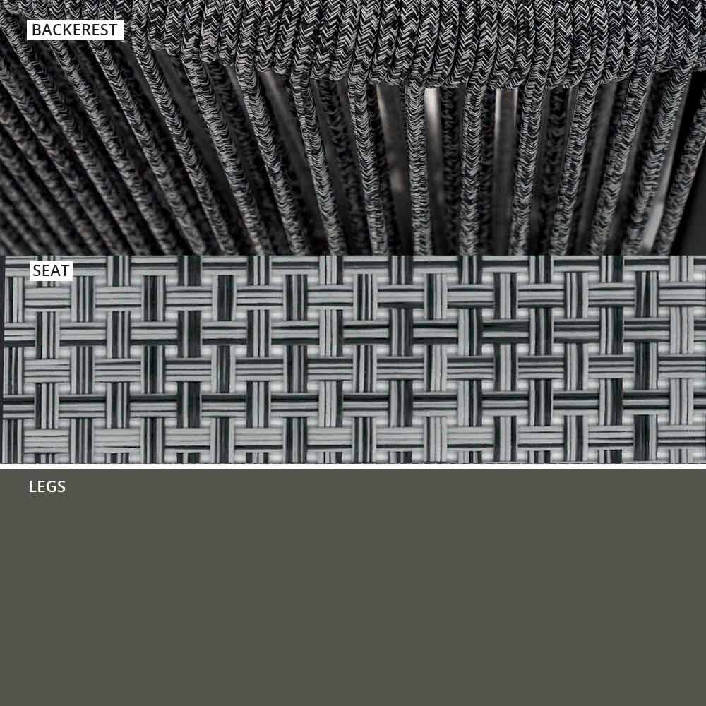 Smart se fabricó con una estructura delgada de aluminio pintado , asiento en tela técnica VAR # TEX (tela técnica de PVC) y respaldo en cordón sintético VAR # TEX (tela técnica de PVC).