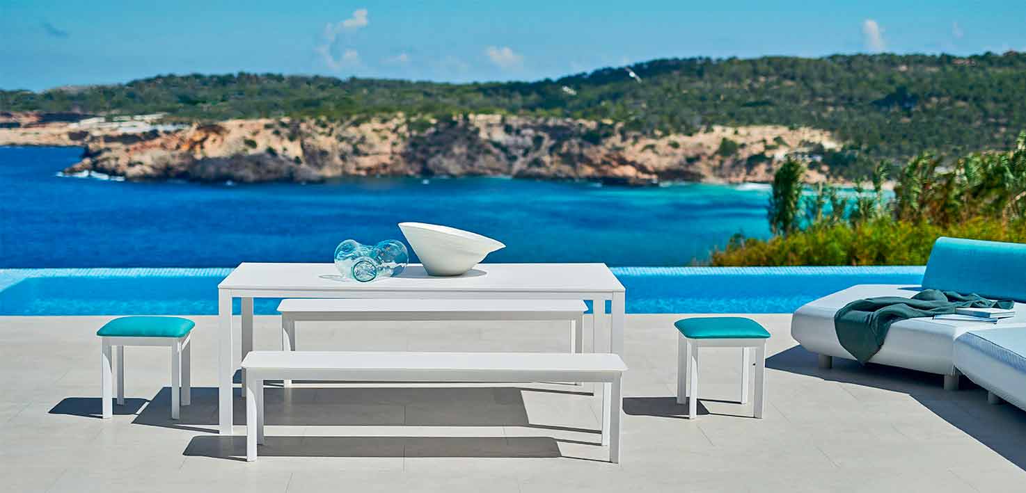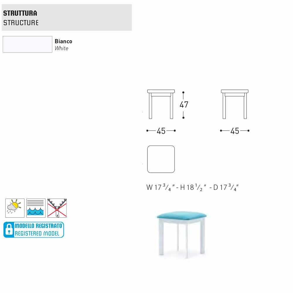 El sistema es un encantador taburete para exteriores con una estructura de aluminio recubierto de polvo blanco con asiento de tela tapizado disponible en diferentes variantes de tela. Gracias a su versatilidad y su diseño contemporáneo, será perfecto para amueblar ambientes al aire libre como terrazas, piscinas, jardines; Pero encuentra la colocación perfecta también en el interior, en la sala de estar.