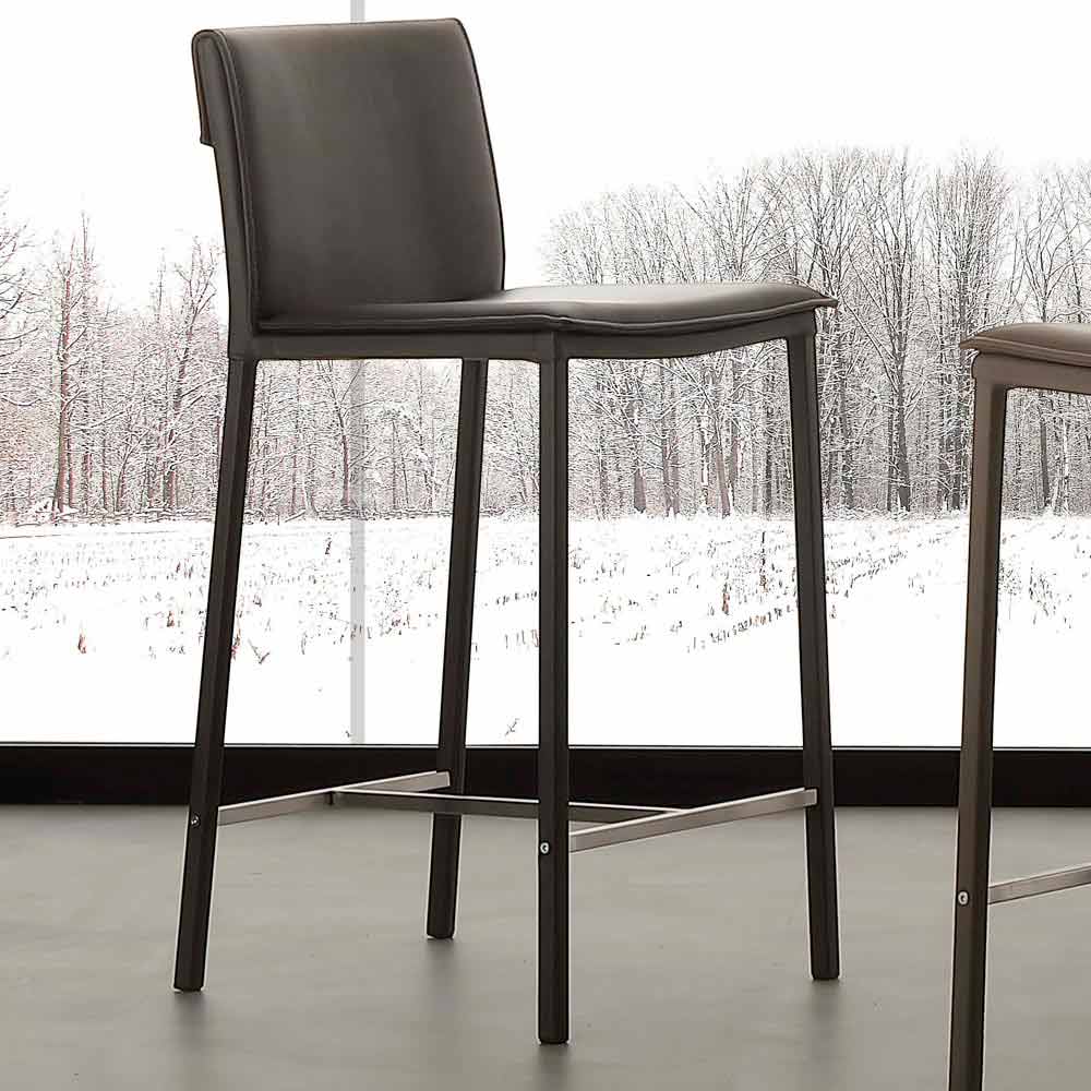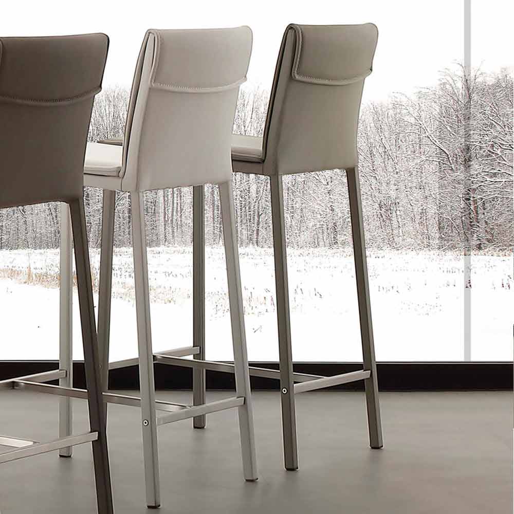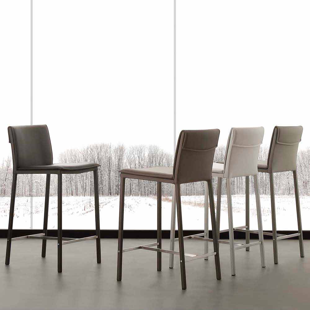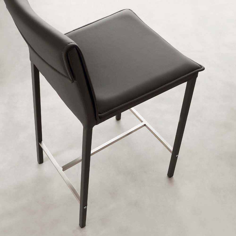 Taburete de acero y metal con asiento de cuero ecológico Prato