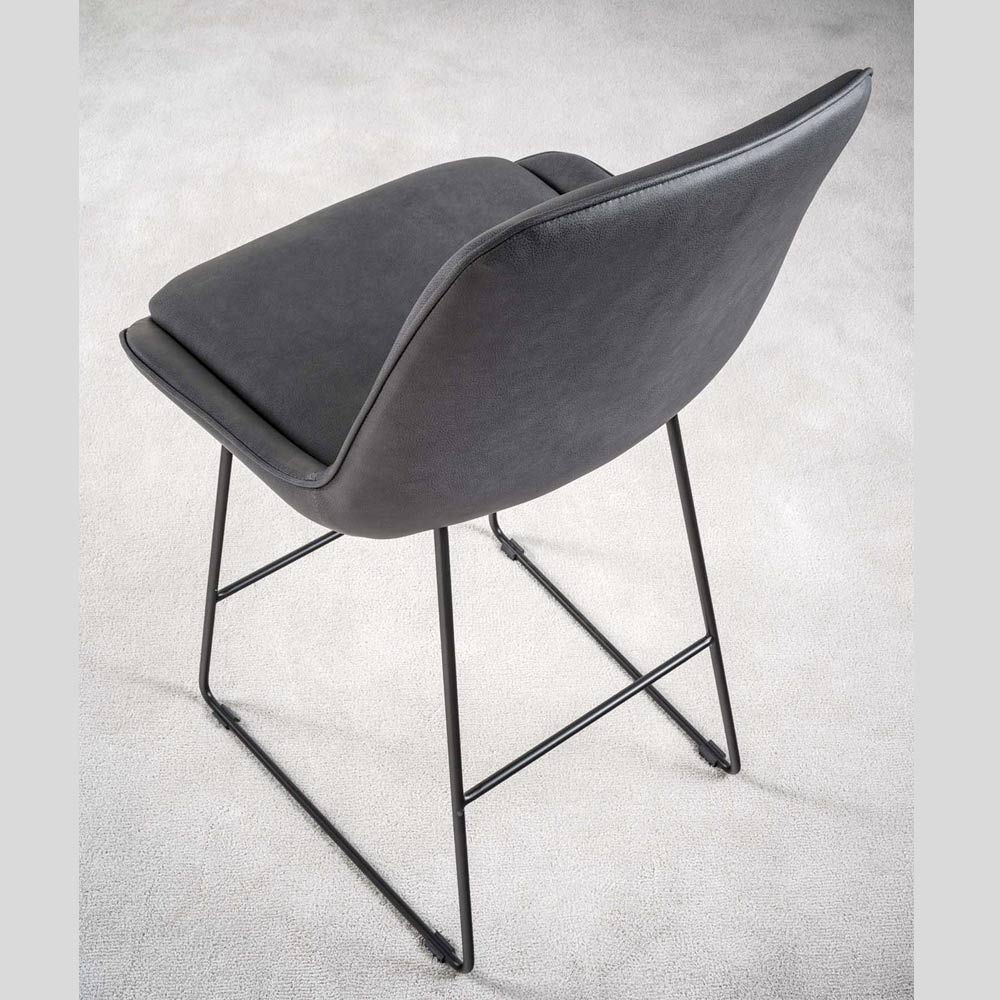 Taburete de interior fabricado con asiento en ecopiel,asiento en ecopiel efecto nubuck con respaldo liso y base de diferentes formas en metal pintado de negro. Sencillez y funcionalidad se unen en este mueble de acabados suaves y lineales. Es perfecto para usar en interiores y se adapta a todas las ocasiones de uso. Gracias al material elegido para su construcción, la calidad y la resistencia están garantizadas incluso en el tiempo.