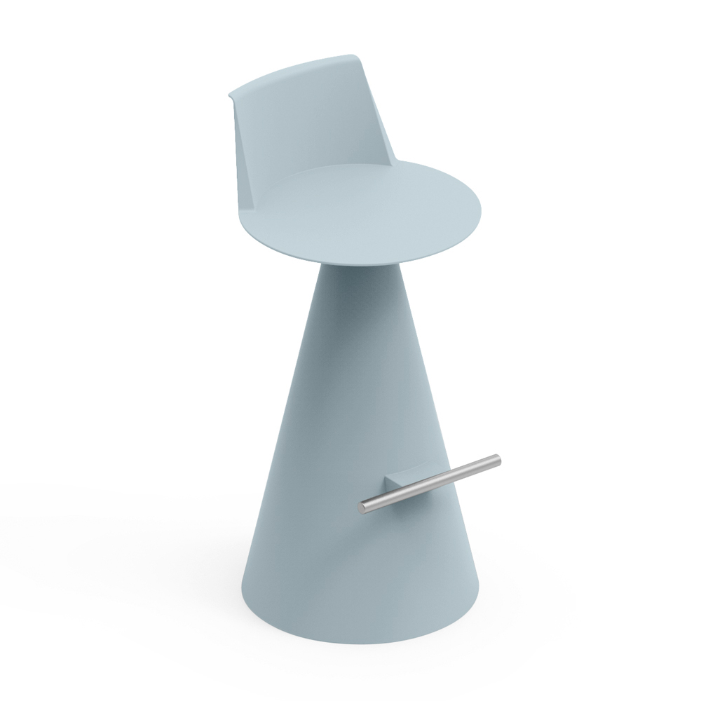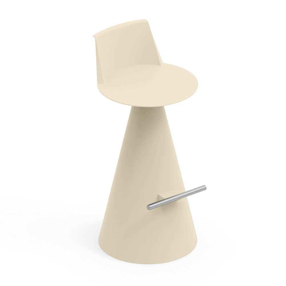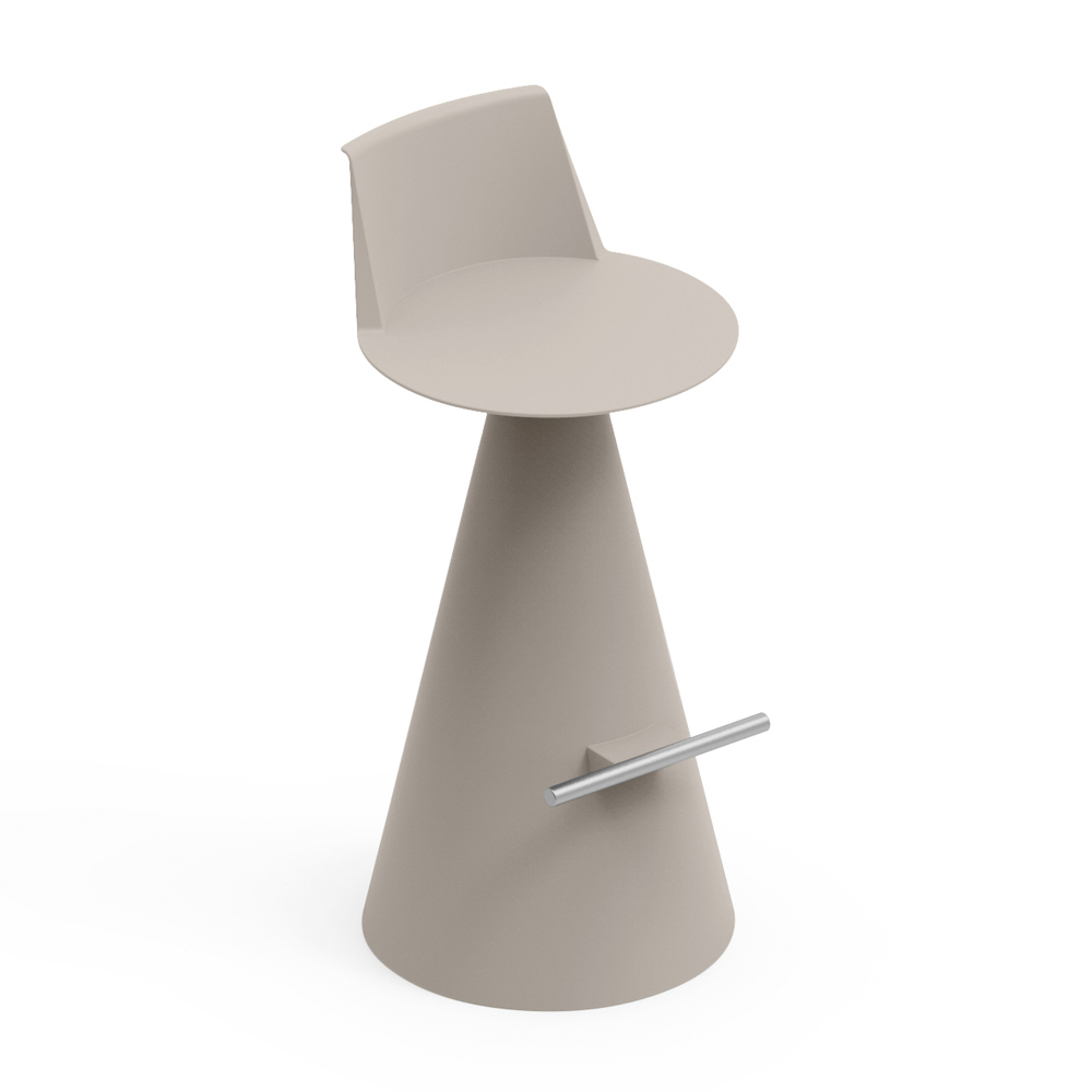 Este moderno taburete destaca por su diseño único e innovador, combinando forma y función de forma estética y práctica. La base cónica se expande hacia arriba hasta convertirse en un cómodo asiento, con un respaldo que ofrece un asiento relajante y ergonómico .