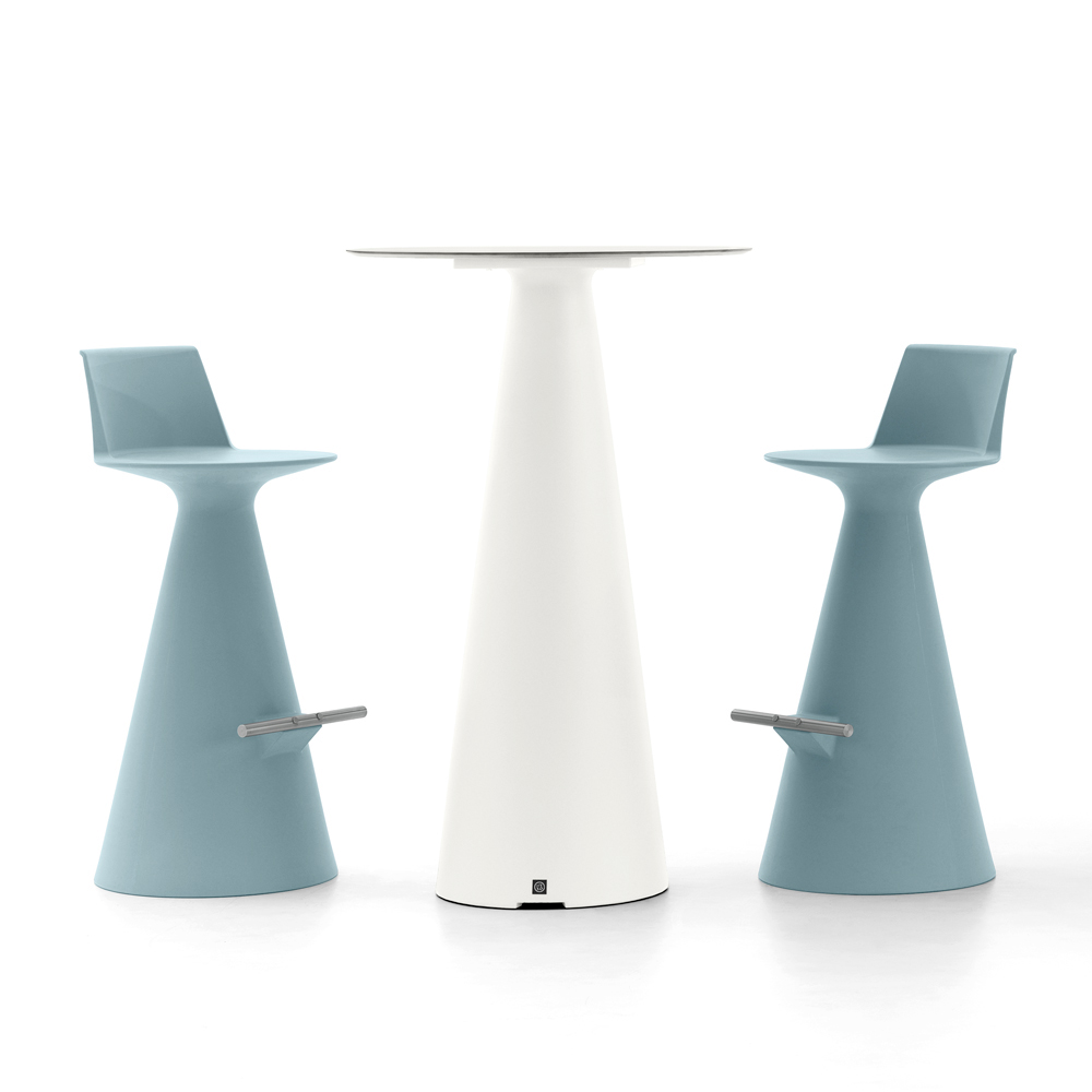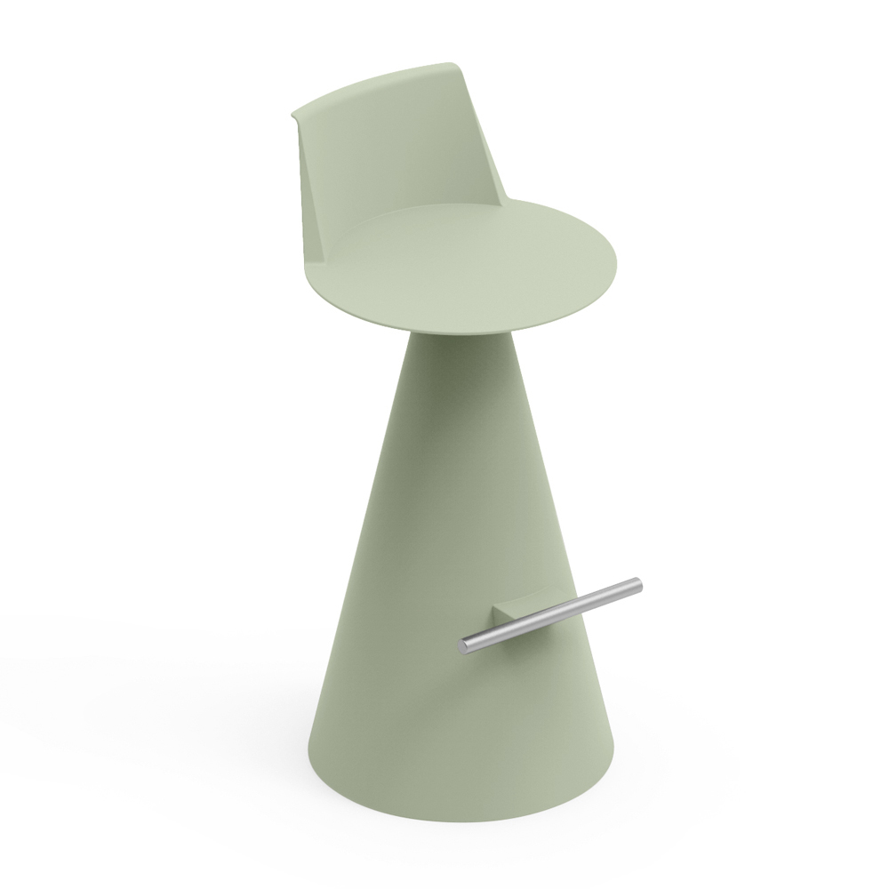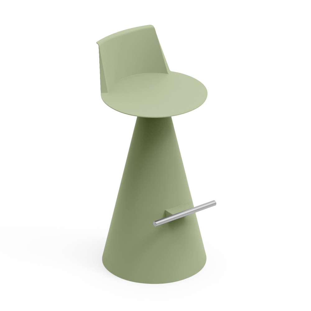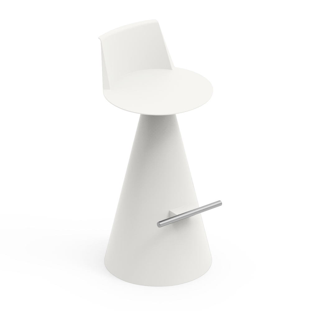 Este moderno taburete destaca por su diseño único e innovador, combinando forma y función de forma estética y práctica. La base cónica se expande hacia arriba hasta convertirse en un cómodo asiento, con un respaldo que ofrece un asiento relajante y ergonómico .