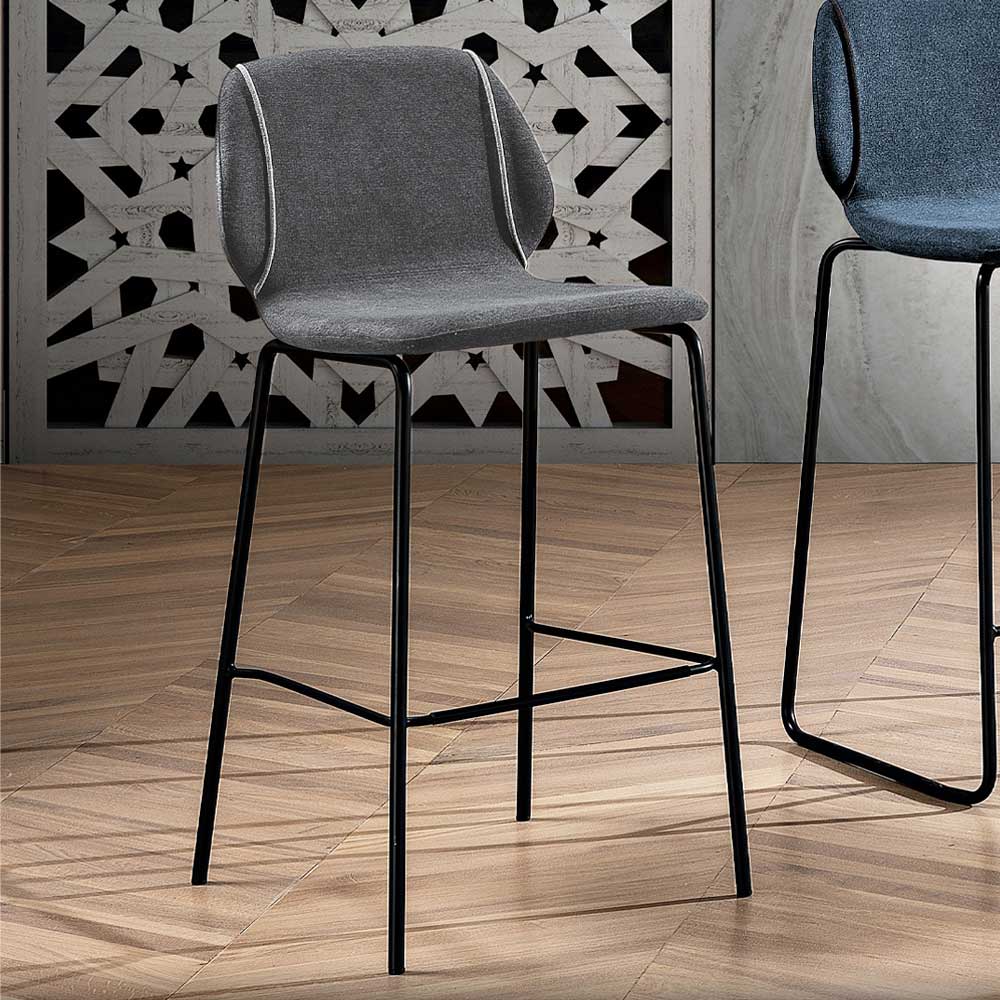 Haz que tu cocina o comedor sea más confortable y elegante con el moderno taburete monocasco con asiento tapizado en tejido hidrófugo coloreado con cenefa disponible en diferentes colores: