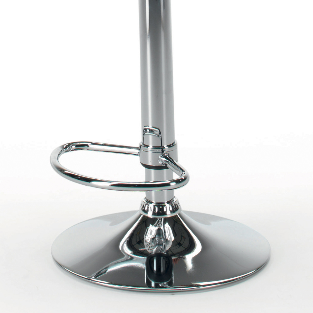 Taburete alto en acero cromado con asiento tapizado en ecopiel Made in Italy.