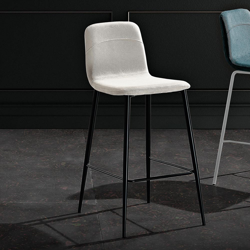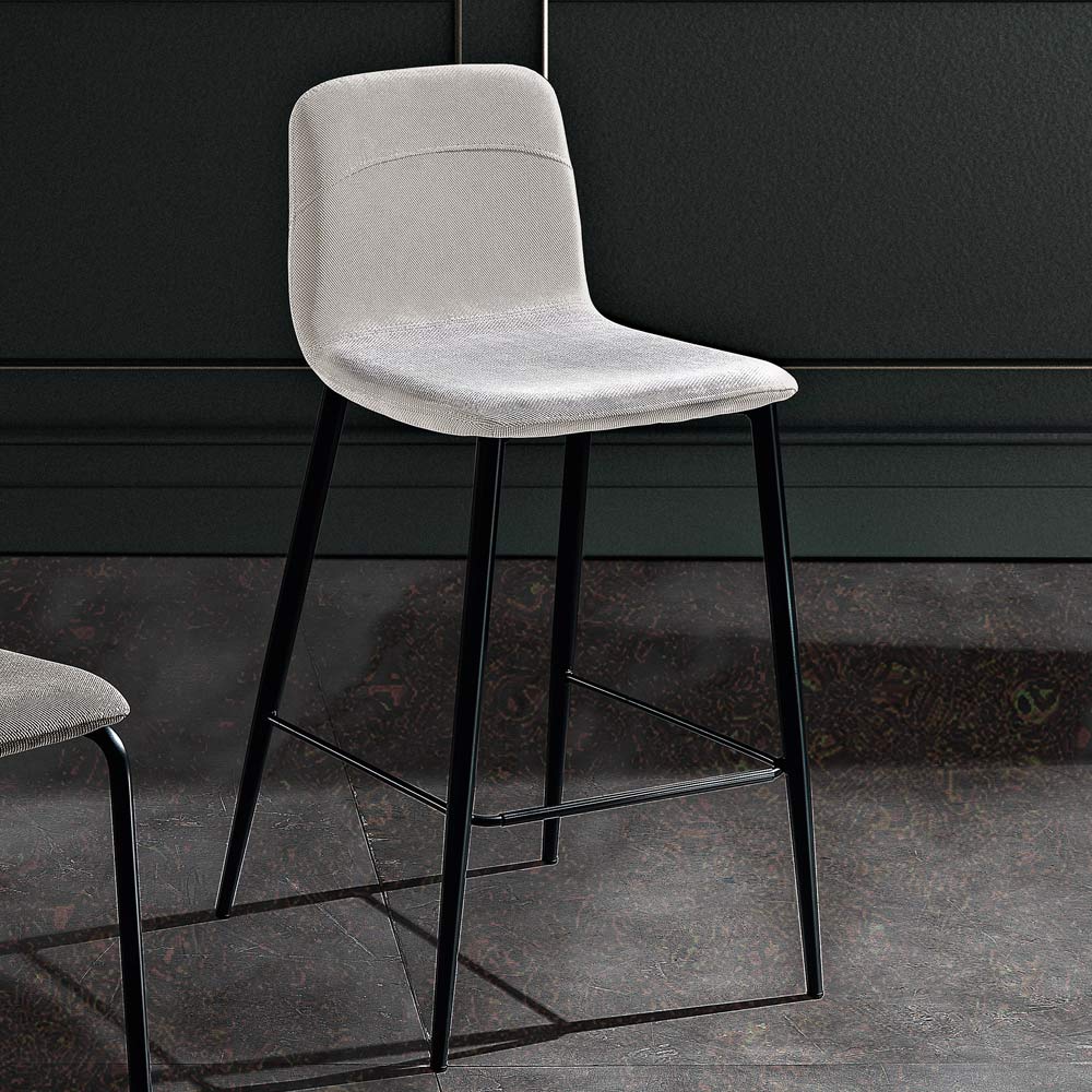 Taburete de cocina con asiento tapizado en tejido y estructura de metal con tubo redondo (diámetro 16 mm) en acabado antracita mate RAL 7021 completo con práctico reposapiés, hecho en Italia.