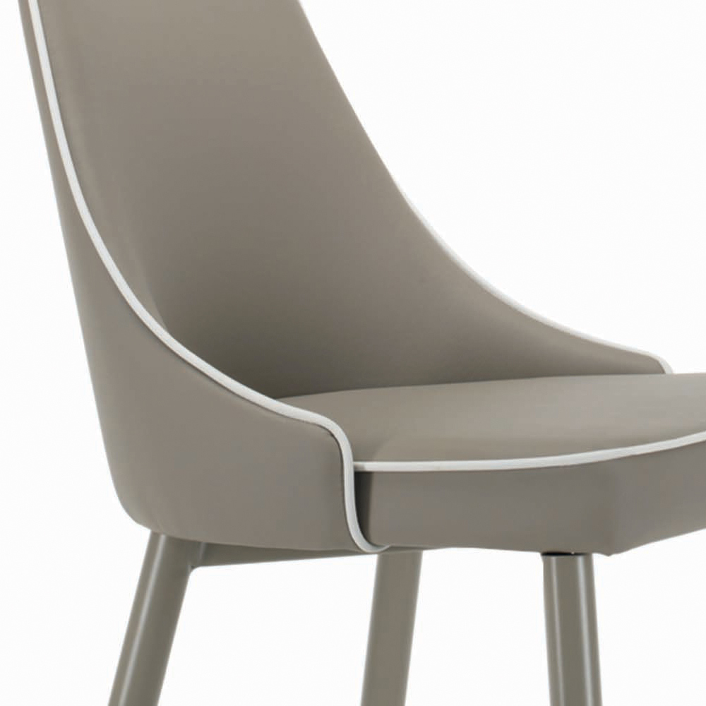 Taburete de salónfijo fabricado con asiento y respaldo de acero totalmente tapizado y base de acero lacado. Las líneas suaves y envolventes del asiento y del respaldo se caracterizan por formas tranquilizadoras. Ideal tanto en el comedor como en la cocina, personalizará los ambientes con diseño y funcionalidad. Representa estilo, calidad, diseño y elegancia. Gracias a sus líneas sinuosas, sencillas y estilizadas se adapta a cualquier tipo de mueble.