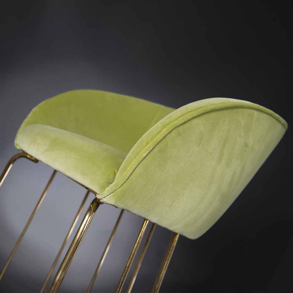 Taburete alto de terciopelo con estructura de metal fabricado en Italia, lujo.