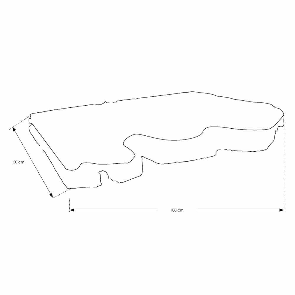 Tapa de teca maciza de forma y tamaño variable. Estantes de soporte bajo pedido. Al ser una pieza única e irrepetible, las medidas indicadas son aproximadas.