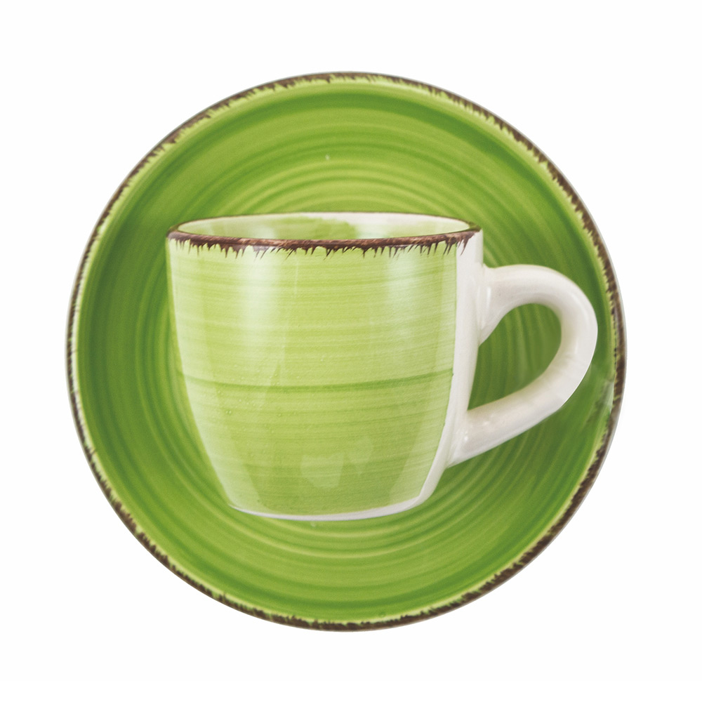 Juego de tazas de café de gres pintado a mano con platillo, 12 piezas.