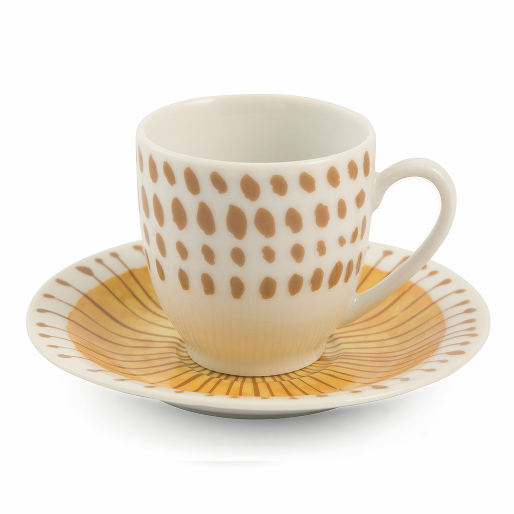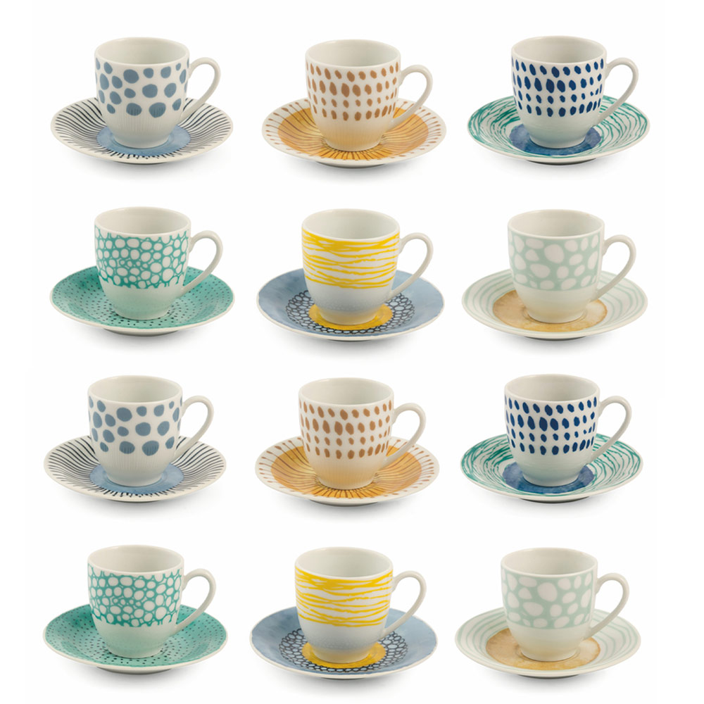 Este juego de tazas y platillos de café está inspirado en el fondo marino tropical , donde el mar deja de ser solo el mar y el telón de fondo se convierte en una obra de arte contemporáneo en constante cambio. Los coloridos peces se mezclan con los corales, rozan las rocas y atraviesan densas y vibrantes algas que esculpen una verdadera instalación abstracta. Un servicio que reproduce la inmensidad de la barrera de coral y que vive en los colores del fondo marino a través de una ola de decoraciones improvisadas y únicas .