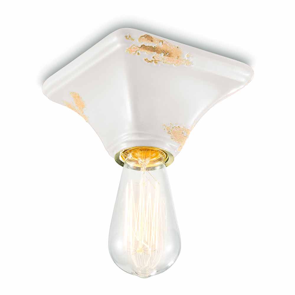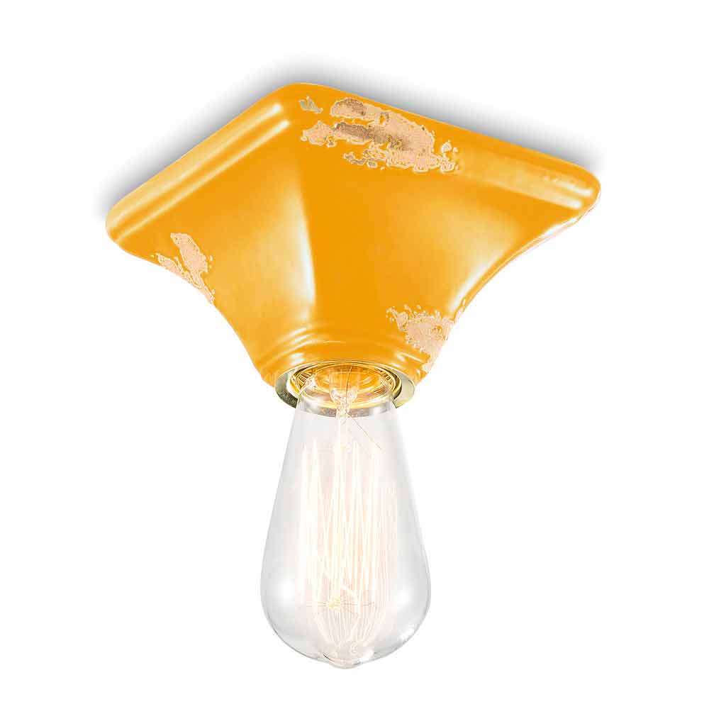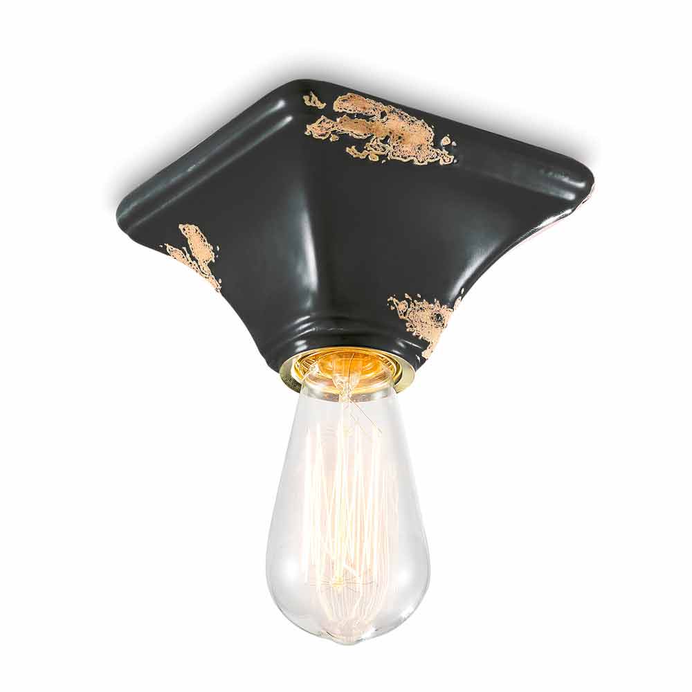 Lámpara de techo vintage de cerámica con base cuadrada Ashley Ferroluce Ashley es una fantástica lámpara de techo, hecha a mano en cerámica por expertos artesanos en Italia. Ashley es una lámpara de techo minimalista y funcional, formada por una base de forma cuadrada. La peculiaridad de esta lámpara radica en el tratamiento de su acabado exterior, decorado de tal forma que si el tiempo hubiera marcado su paso. La reproducción de la erosión del tiempo combinada con las superficies brillantes le dan ese valor extra a esta lámpara de techo. Ideal para ambientes con estilo urbano y sabor vintage. Ashley se compone de un diseño esencial y elegante, que conserva la esencialidad del uso y tranquiliza con un delicado equilibrio entre formas y tonalidades. ¡Pequeños detalles para un gran efecto con sabor antiguo! Lámpara disponible en diferentes acabados. ¡Consulta la carta de colores e introduce el código del acabado que deseas en la casilla correspondiente!