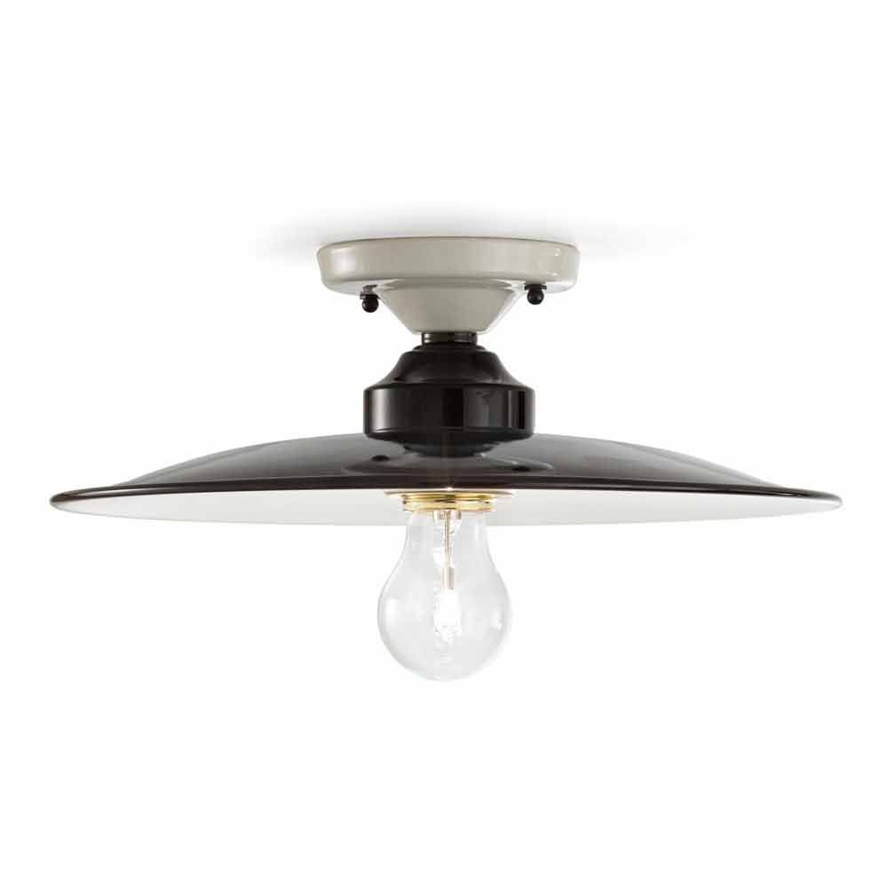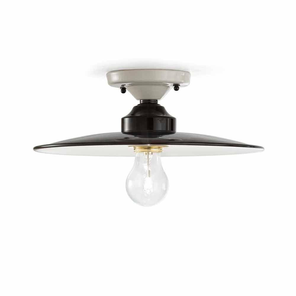 Plafón de diseño en cerámica brillo Jane Ferroluce Jane es una lámpara de techo fantástica, hecha a mano por expertos artesanos en Italia. Lámpara realizada en cerámica, con difusor exterior en acabado negro brillo, mientras que la parte interior del difusor, y la fijación a pared están realizadas en acabado blanco brillo. Jane está disponible en diferentes tamaños. La peculiaridad de esta hermosa lámpara de techo está contenida en su forma y diseño. Dotada de un estilo único y original, Jane trae consigo un estilo vintage-industrial reinterpretado, y es capaz de adaptarse a cualquier mueble, desde el más sencillo y minimalista, hasta el más clásico, creando un delicado contraste; todo esto es posible gracias a sus superficies simples, lineales y sin adornos. Los colores claros y las superficies brillantes determinan el perfil de esta fantástica lámpara de techo. Jane tiene un diseño actual, aunque conserva el recuerdo de un estilo pasado. ¡Dale un toque de diseño también a tu hogar y elige los tamaños más adecuados para ti!