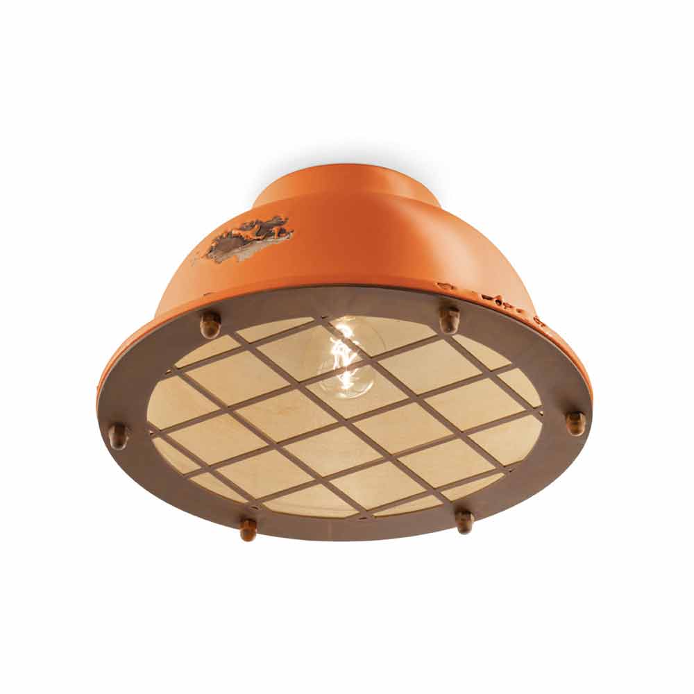 Plafón de cerámica de estilo marinero con rejilla Mary Ferroluce Mary es una fantástica lámpara de techo, con una forma original y un estilo vintage-industrial, hecha a mano por expertos artesanos en Italia. Esta preciosa lámpara está realizada en cerámica brillo, disponible en diferentes colores y con detalles en hierro. La principal peculiaridad de esta lámpara radica en la elaboración artesanal de la cerámica. La cerámica, de hecho, está decorada como si el tiempo hubiera marcado su camino. La reproducción de la erosión del tiempo combinada con las superficies brillantes le dan ese valor extra a esta lámpara de techo. Este efecto desgastado le da a Mary un sofisticado estilo vintage-industrial. Otra peculiaridad de esta fantástica lámpara está contenida en su original diseño, empezando por su tapa de rejilla y las tuercas ciegas de fijación, ambas en acabado corten. Estos pequeños detalles hacen de esta lámpara de techo de estilo náutico una lámpara inimitable. Colores vivos, superficies brillantes y refinados signos de la edad para un perfil actual disfrazado de estilo pasado. Ideal para decorar una casa de campo de estilo inglés. Esta lámpara creada para ambientes con un ambiente envolvente, es capaz de satisfacer las peticiones más exigentes gracias a un diseño único y original. Un diseño que se opone al lujo pero que convive armónicamente con él. Diseño que preserva la esencialidad del uso y tranquiliza con un delicado equilibrio entre formas y tonos. María da vida a la luz pura, sin pantallas. Son estas formas simples y delicadas las que llaman la atención, y las que hacen que Mary pueda adaptarse a cualquier decoración, desde la más sencilla y minimalista hasta la más clásica, creando un delicado contraste. ¡Dale un toque de diseño también a tu hogar! ¡Pequeños detalles para un gran efecto con sabor antiguo! Lámpara disponible en diferentes acabados. ¡Consulta la carta de colores e introduce el código del acabado que deseas en la casilla correspondiente!