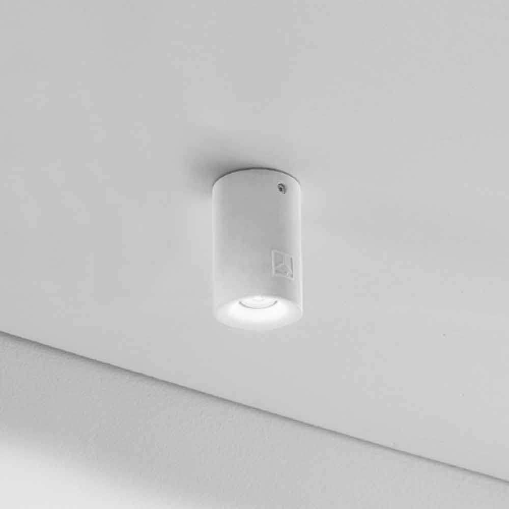 < Plafón de exterior LED de diseño Nadir 9 de AldoBernardi , forma redonda, disponible en versión de hormigón o yeso. Convertidor LED incluido.
