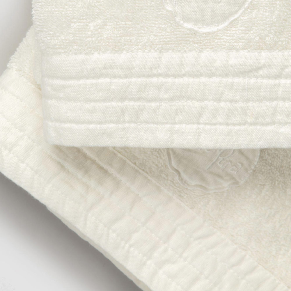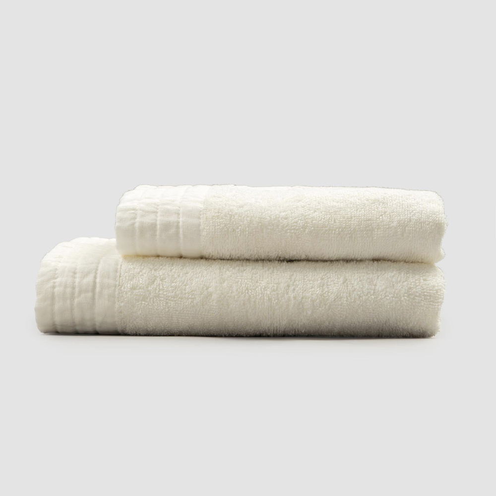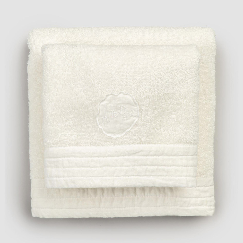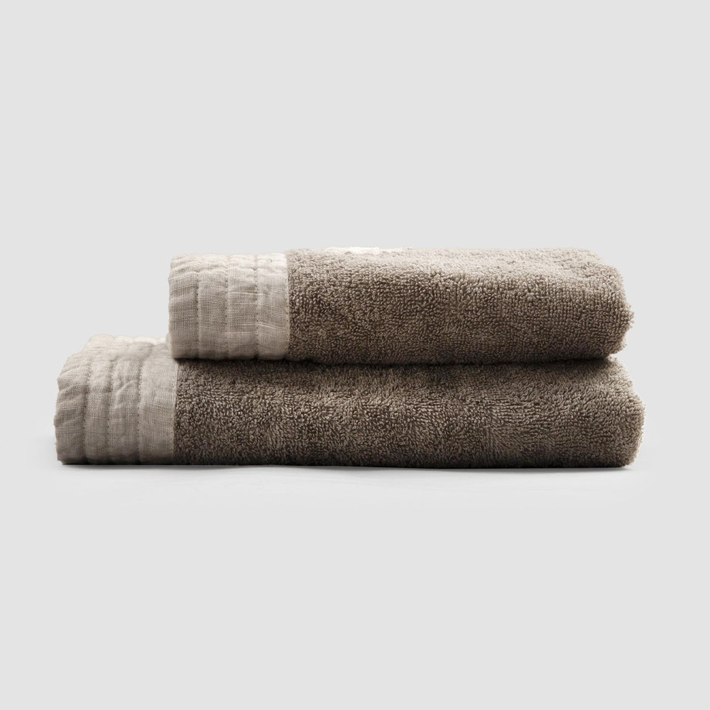 El valor de la tradición se une al estilo de vida moderno con las toallas para la cara y para invitados en rizo de algodón con un borde de mezcla de lino .