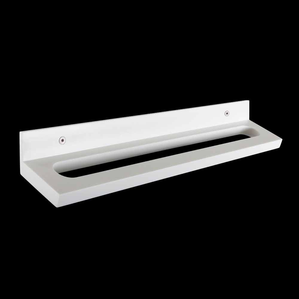 Elija el soporte de baño de pared para un ambiente moderno y lujoso hecho íntegramente de Corian blanco con tornillos a la vista, un material higiénico de líneas esenciales, de 19 mm de espesor.