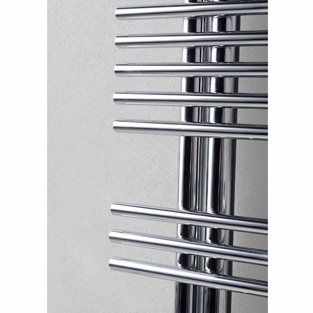 Este radiador calentador de toallas eléctrico presenta un diseño cromado hecho con tubos verticales de 35 mm de diámetro y tubos redondos horizontales de 25 mm de diámetro. Su forma moderna y particular la hace ideal para decorar los baños más recientes dando un toque de originalidad. Es un radiador de acero al carbono apto para ambientes contemporáneos, fabricado íntegramente en Italia, el valor del radiador está determinado por valores como la calidad total, el servicio del más alto nivel, la búsqueda de un diseño siempre innovador pero funcional y el respeto por el medio ambiente. no solo en el desarrollo de productos de bajo impacto ambiental sino también en la fase de producción.