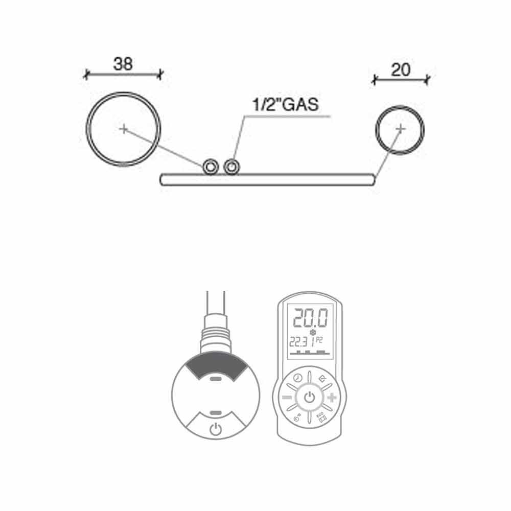 Se incluye la resistencia eléctrica con infrarrojos equipada con control remoto estándar, cable de 1200 mm con enchufe schuko y un suplemento de glicol para ser utilizado como anticongelante e inhibidor de óxido para la protección del sistema. Bajo pedido están disponibles la resistencia eléctrica digital, la tapa de resistencias en el mismo acabado que el radiador o el kit termostato ambiente con programación semanal y receptor de radiofrecuencia para caja mural. También está disponible la versión con instalación hidráulica o mixta del radiador. Póngase en contacto con nosotros para una cotización.