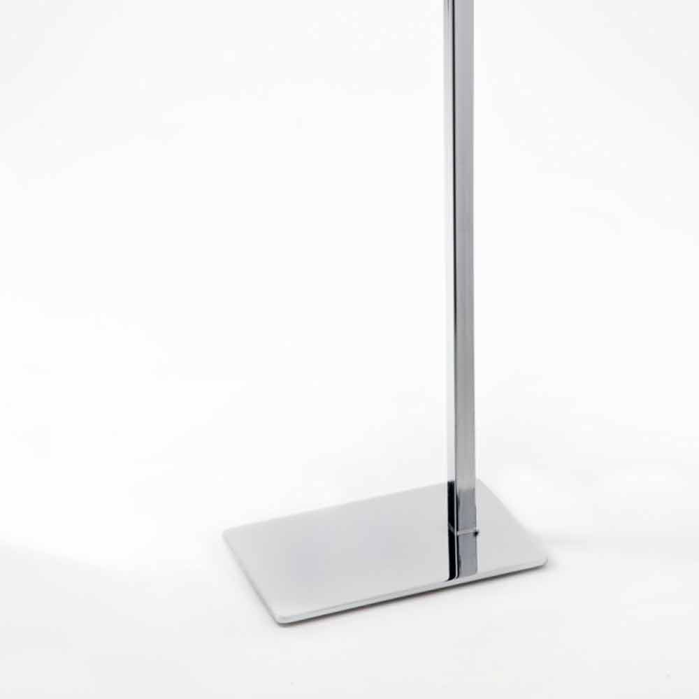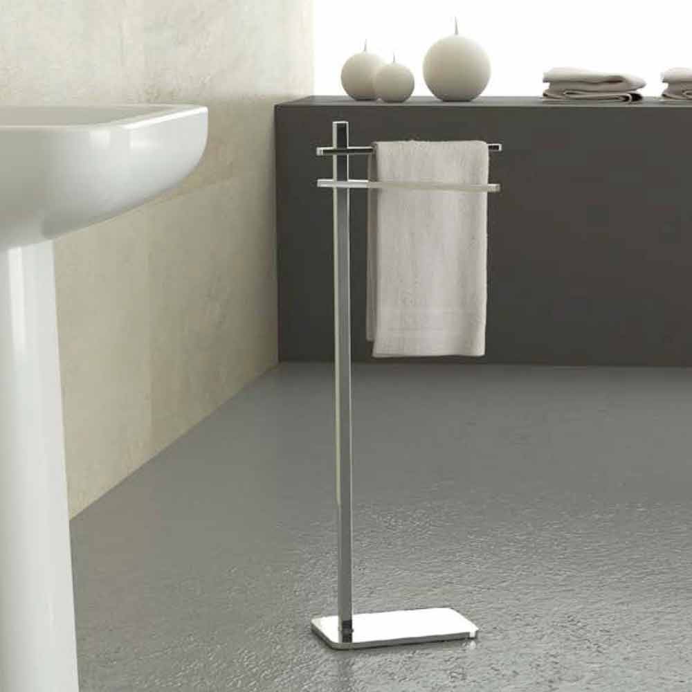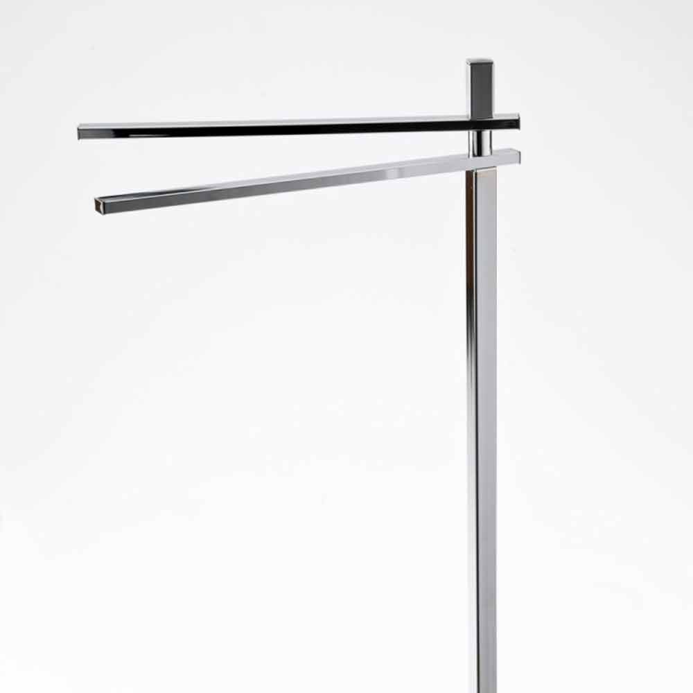 Lámpara de pie para toallas fabricada en Italia con estructura de hierrocromado de 2 brazos. Caracterizado por líneassuaves y redondeadas, lo que hace único a este complemento de decoración de refinado gusto es su inconfundible sencillez que subraya su elegancia y fuerte personalidad . Su función es permitir una organización y disposición óptima de toallas y toallas de baño pero al mismo tiempo representa un verdadero elemento decorativo capaz de realzar y resaltar el mobiliario circundante.