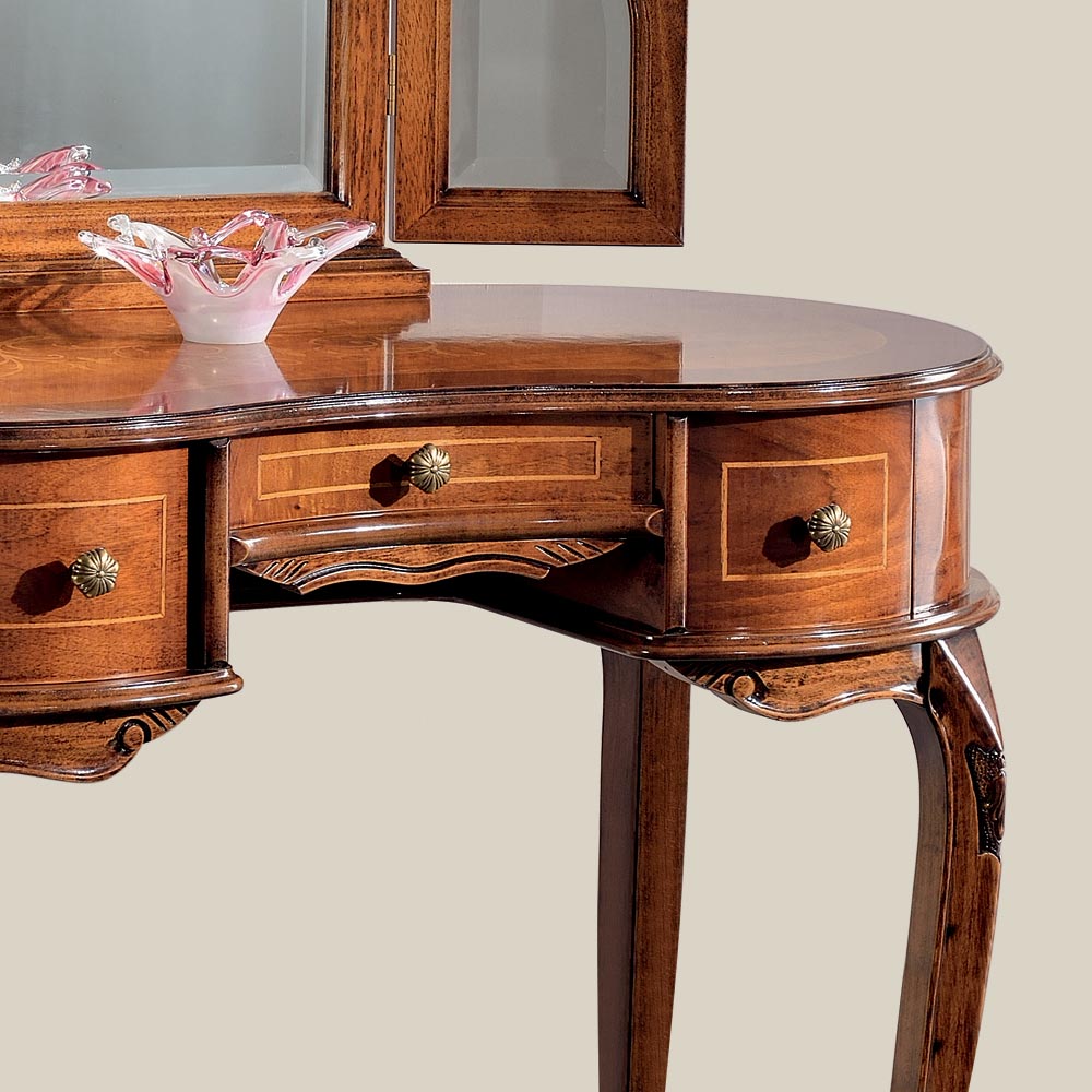 Este refinado tocador con 3 cajones y espejo esidealpara amueblar el dormitoriocon un estilo clásico atemporal. Todo el estilo y la artesanía que caracterizan la mano de obra emergen en este suntuoso mueble realizado con madera preciosa en acabado nogal o blanco con incrustaciones doradas que lo convierten en un refinado complemento capaz de embellecer el ambiente en el que se coloca. Totalmente fabricado en Italia y hecho a mano por expertos maestros artesanos , acabado con sabiduría y gusto por la elegancia. La producción se lleva a cabo utilizando materiales nobles y realizando el trabajoamano con el máximo cuidado y profesionalismo que distingue a los productos Made in Italy .