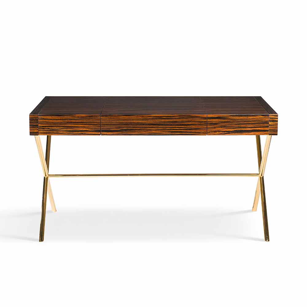 Hecho de madera real pulido ébano o blanco perla, 45 de unión °, laca interior mate y plano central que se puede abrir con el espejo y la luz LED suministra. Base galvanizado pulido 24 kt de metal chapado en oro.