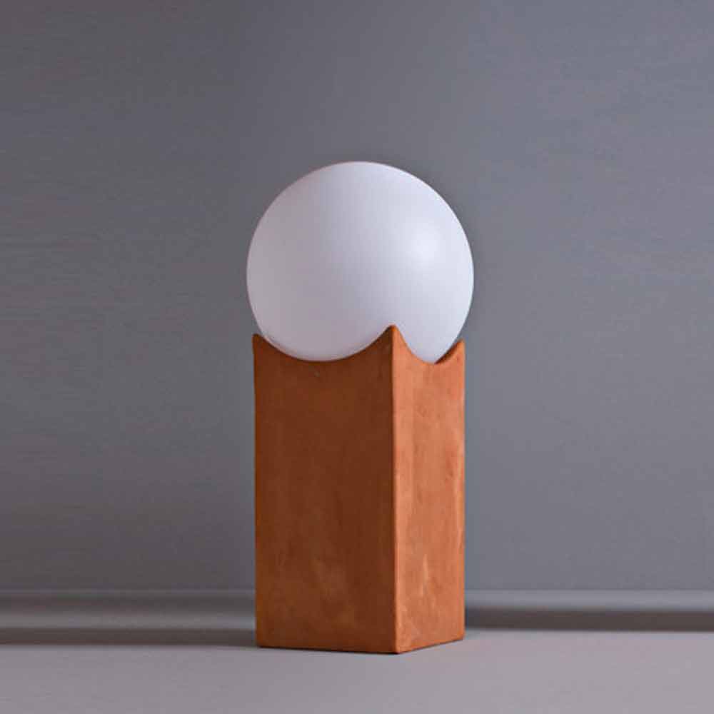 Poste de luz exterior Atlante Toscot hecho en Toscana La serie ATLAS propone una reinterpretación del farol de exterior, que juega con el contraste entre la redondez de la esfera luminosa y la angularidad de la base de terracota.