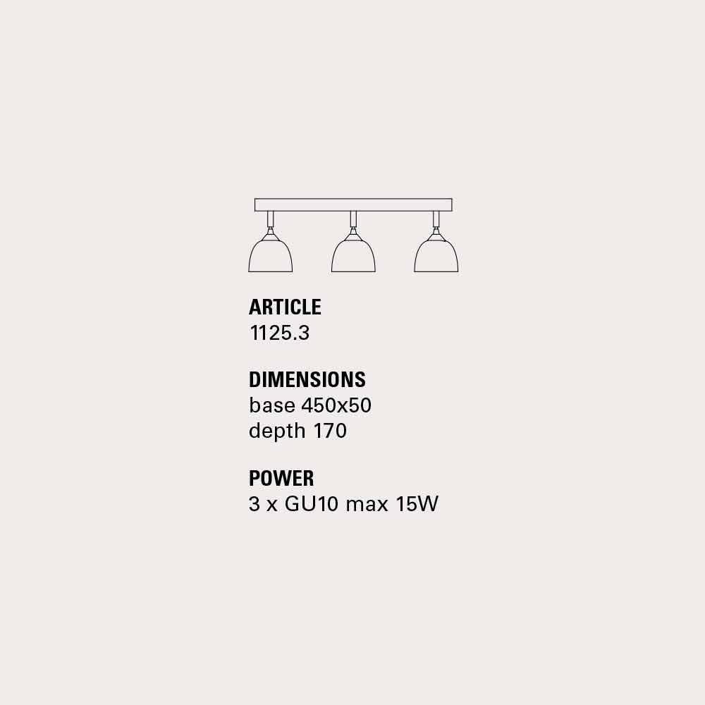 Dimensiones: Base L.45xH.5 TH.17 Bombillas: 3 x GU10 max 15W IP 20 - no incluidas