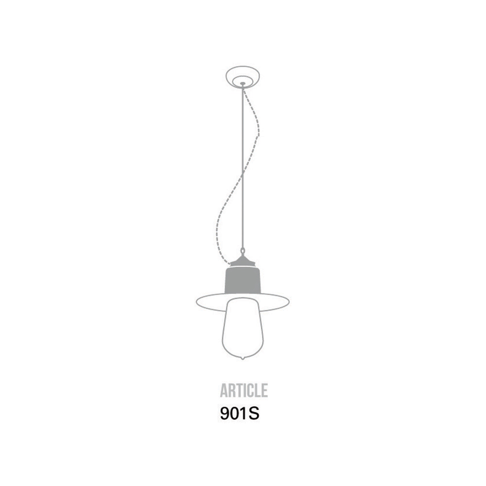 Lámpara colgante individual con rosetón. Dimensiones : Base Ø12 Plato Ø23 Vidrio Ø10 H.150 Bombillas : 1 x E27 max 70W IP 44 - no incluidas