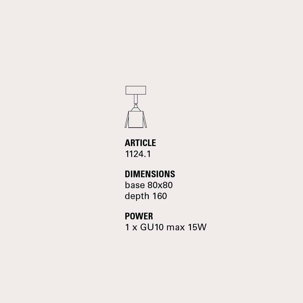 Dimensiones: Base L.8xH.8 TH.16 Bombillas: 1 x GU10 max 15W IP 20 - no incluidas