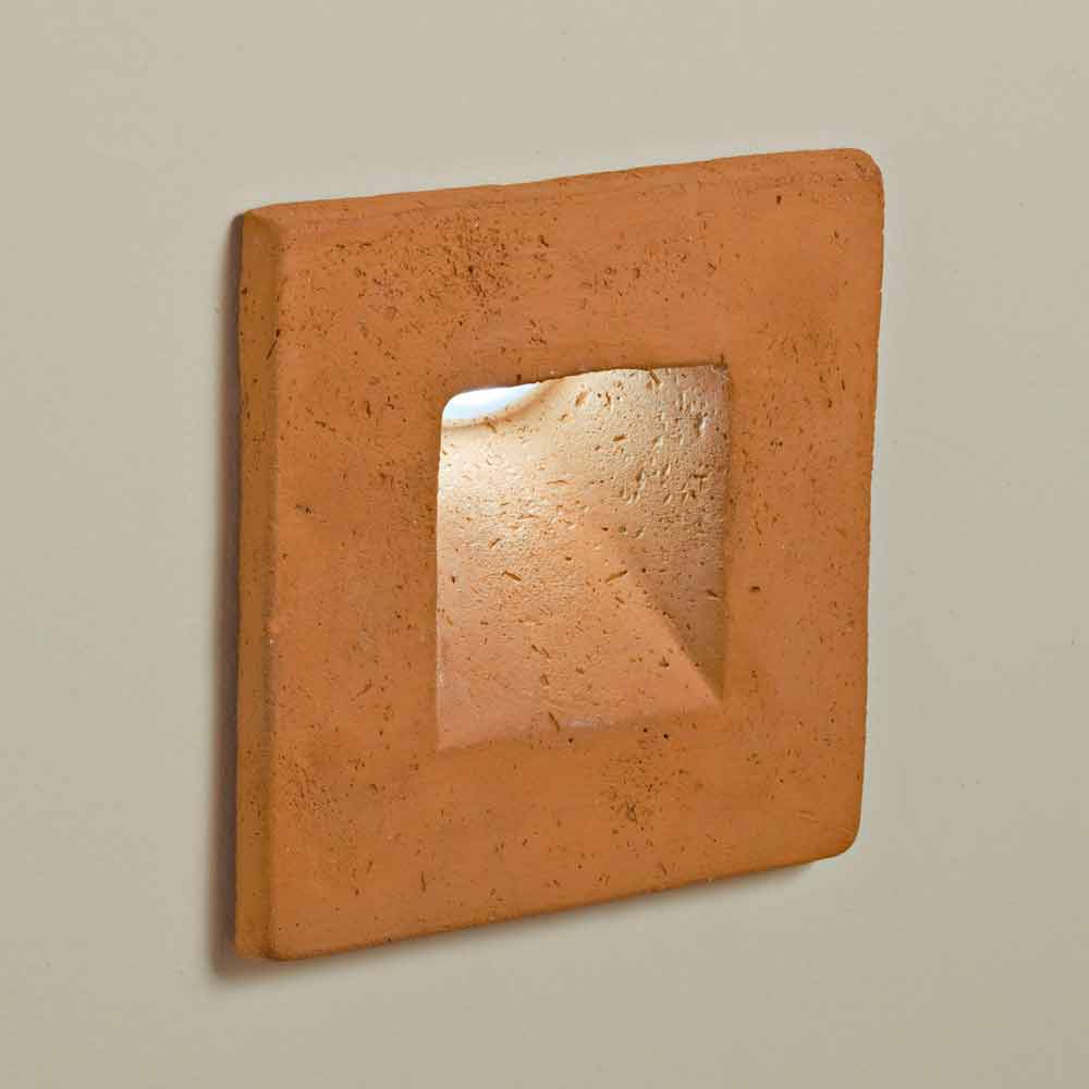 Aplique de exterior LED Square en terracota Square Square es un aplique LED empotrable de forma cuadrada realizado totalmente a mano en terracota. Aplique de pared único y robusto para exteriores clásicos o rústicos, para iluminar porches, avenidas o zonas de paso, caracterizado por un diseño minimalista, creando pequeños nichos donde la luz se esconde e ilumina con toda su elegancia. Su acabado se realiza con colores específicos para el exterior. Square es un aplique único y original, hecho completamente a mano según la verdadera tradición toscana. Sus líneas son actuales y modernas, aptas para diversos ambientes. Lámpara que va desde lo retro a lo moderno. Esta pequeña lámpara de pared garantiza un haz de luz directo con un ángulo de 40°. Fabricada con materiales de alta calidad, Square está disponible en diferentes temperaturas de color de la luz LED, ¡elige la que más te convenga!